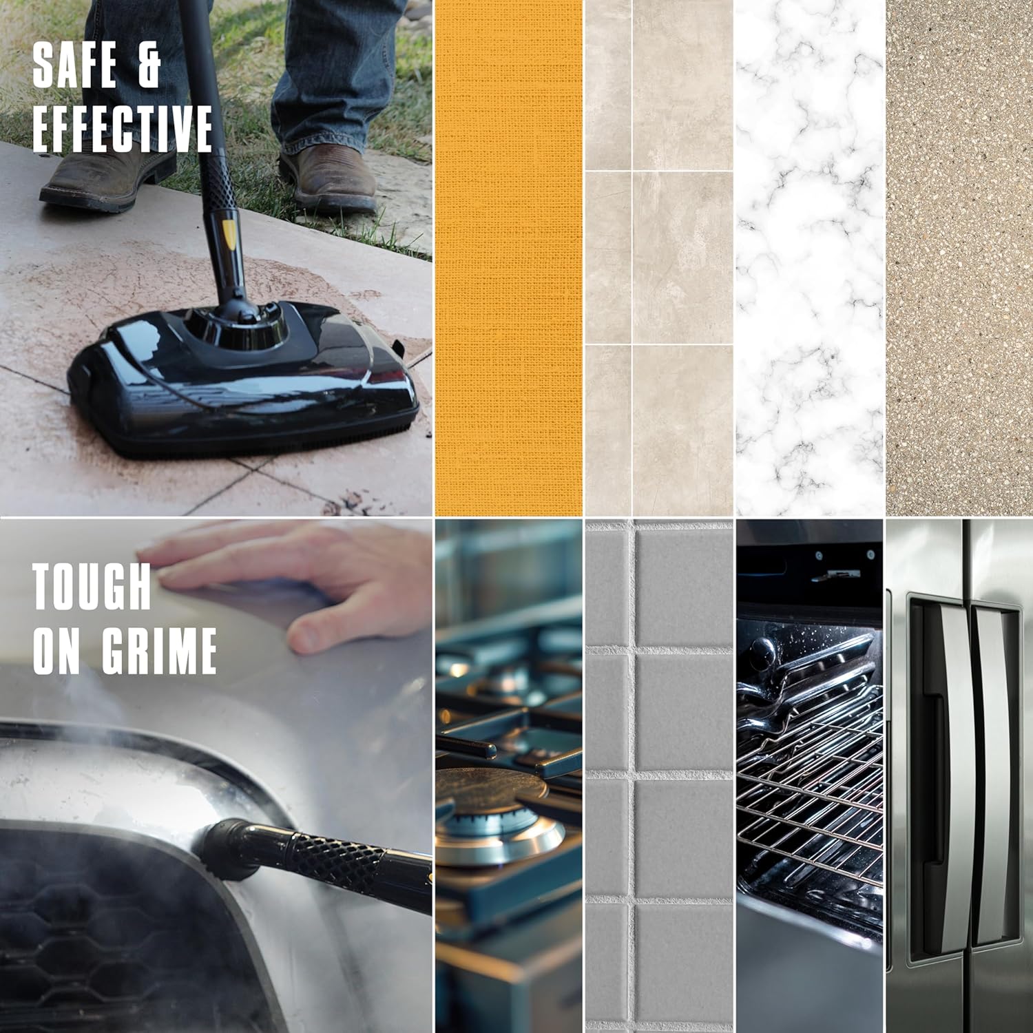 - CHEMICAL-FREE CLEANING — Naturally deep clean without the use of harsh chemicals using hot, pressured steam to eliminate grease, grime, and stains from a wide range of surfaces including tile, grout, granite, laminate, appliances, grills, autos, and more.