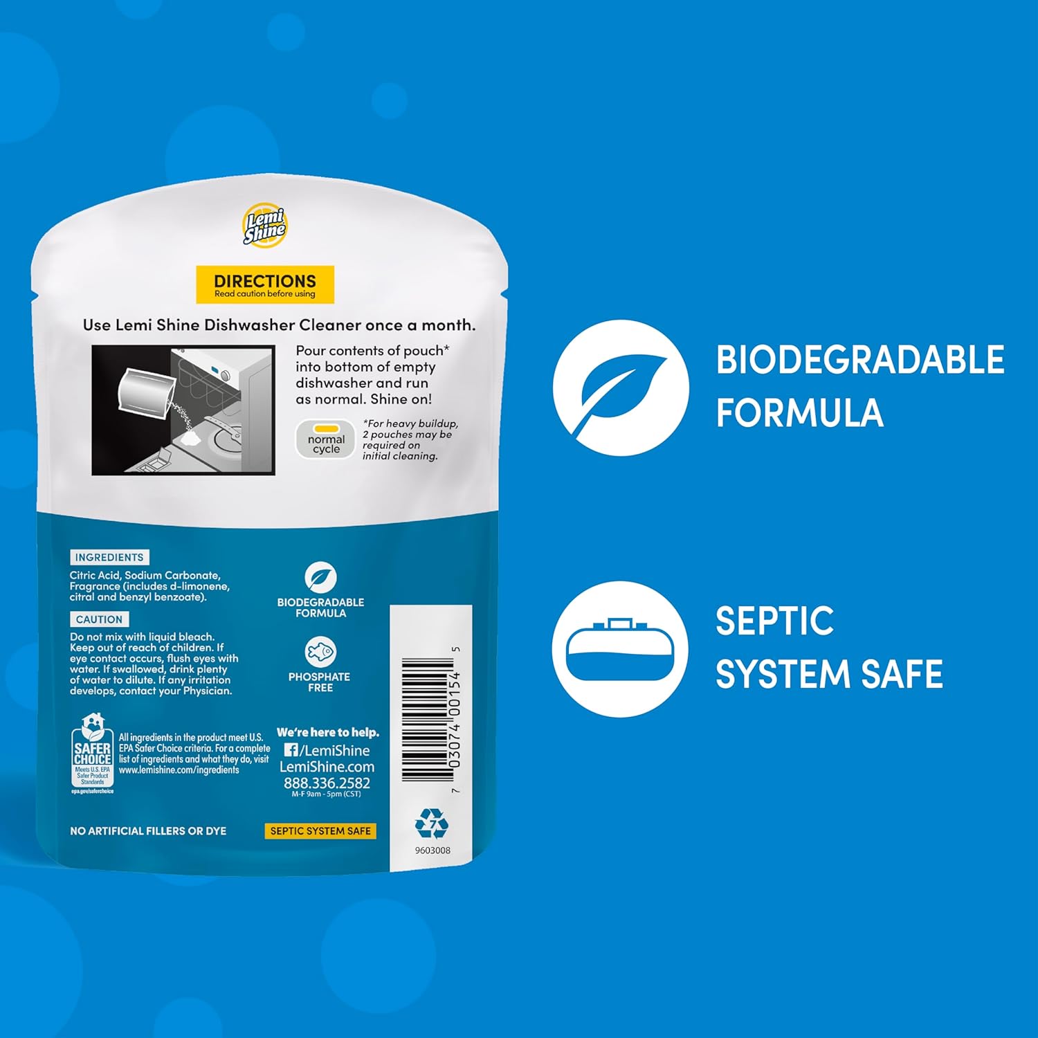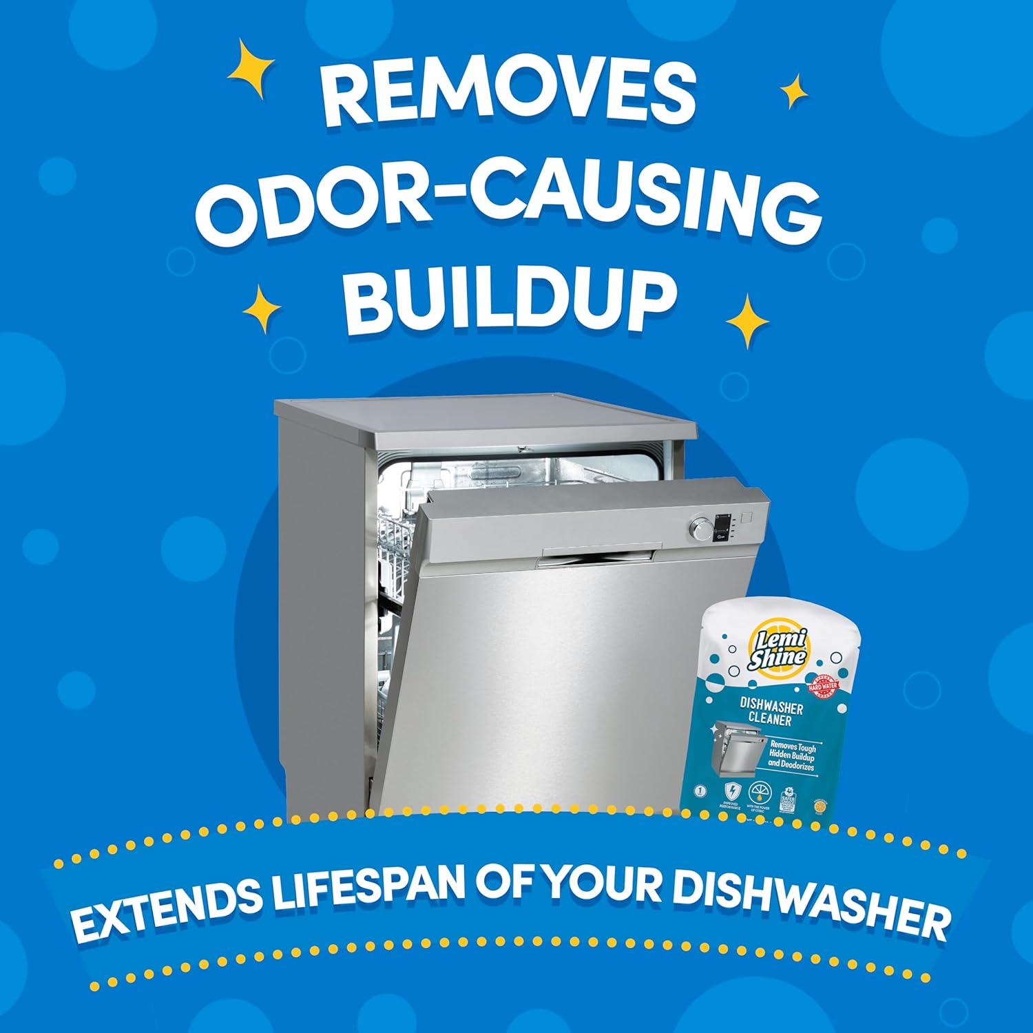 - REMOVE ODOR CAUSING BUILDUP AND FIGHT HARD WATER STAINS: The Lemi Shine dishwasher cleaner gets into hidden parts of your machine to remove odor-causing buildup, hard water stains, and leftover gunk that keeps your machine from running at its best