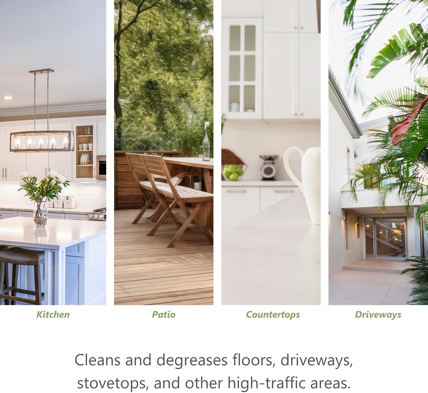 - Concentrated formula dissolves grease, dirt and grime in high traffic areas. Safe for daily use.