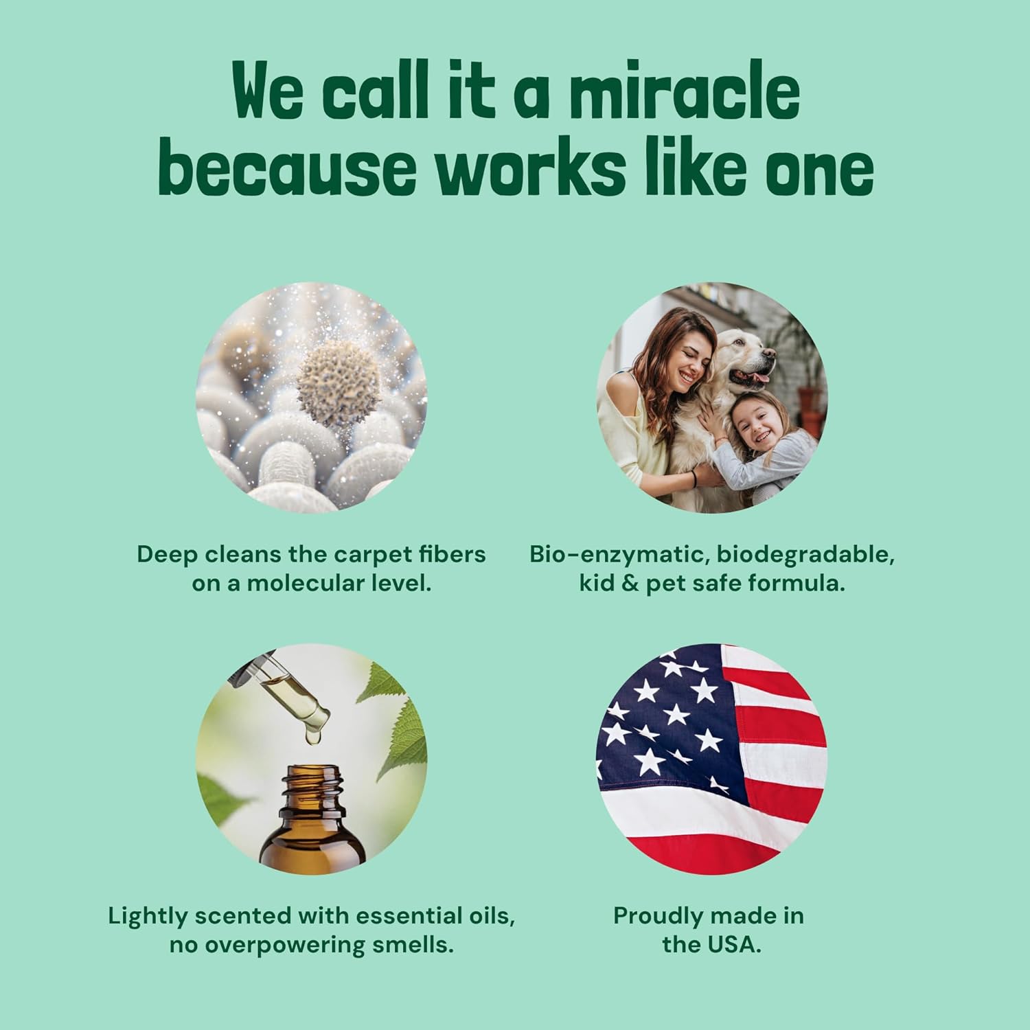 - Pet and Family Friendly: Our pet carpet cleaner solution is crafted with clean ingredients, ideal for homes with pets and kids. Feel confident using this carpet cleaner for pets, knowing it's safe for your loved ones