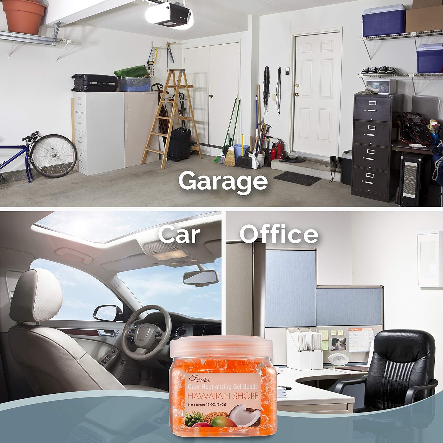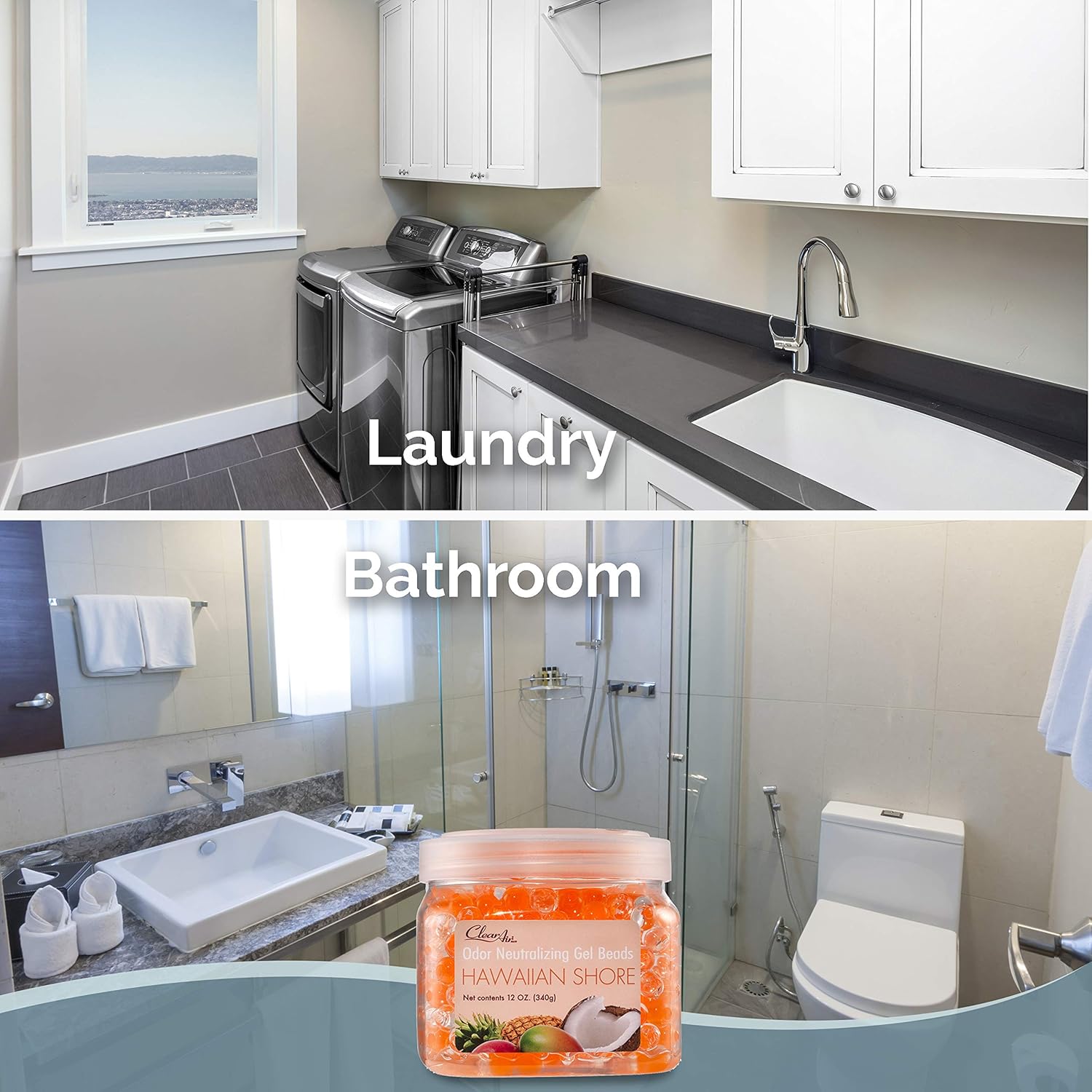 Clear Air Odor Eliminator Gel Beads - 12 oz, Pack of 2 - Air Freshener Made with Essential Oils - Eliminates Odors in Bathrooms, Cars, Boats, RVs & Pet Areas - Hawaiian Shore Scent