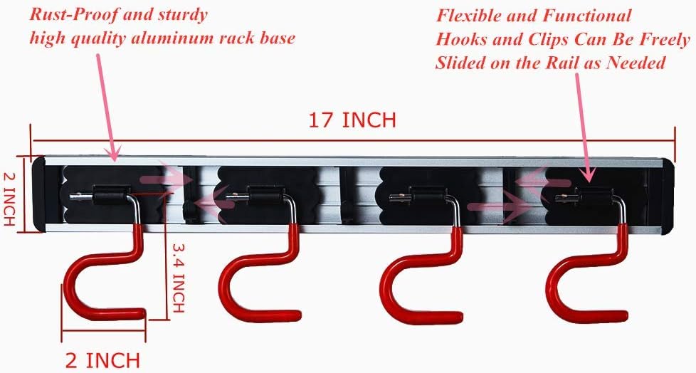 - Keep Your Room Tidy:The broom rack holds mops and brooms conveniently on the wall.This Space Saver Rakes also included hooks for items like dusters.