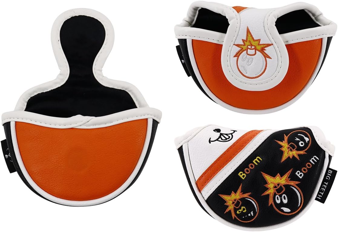 - FUNNY BIG TEETH GOLF HEADCOVERS: Magnet putter cover use fashion and cute bomb embroidery, looks very nice in the bag
