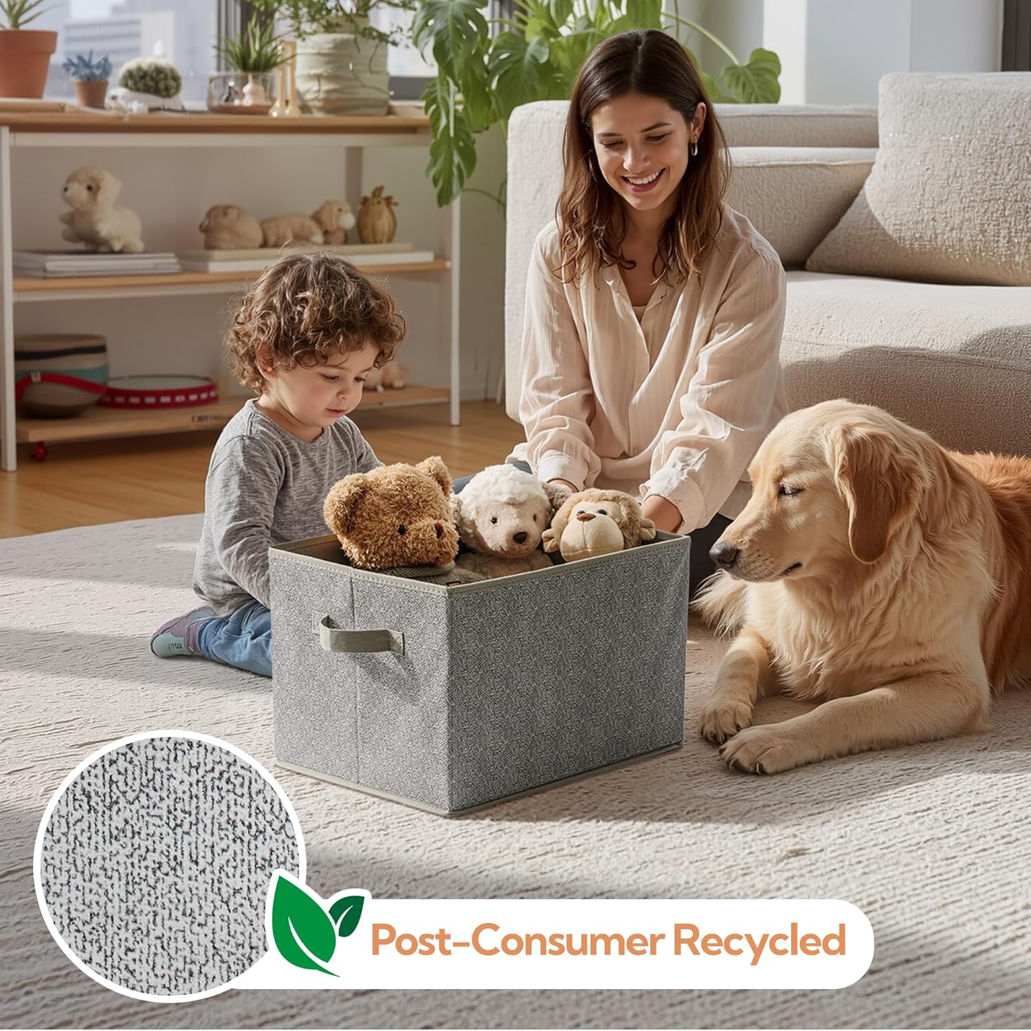 - Eco-Friendly Material - Made of textured linen-like fabric, breathable and wear-resistant, without irritating odor. Fabric boxes come in sets of 3, each measuring 15¼"L x 11¾"W x 10½"H .