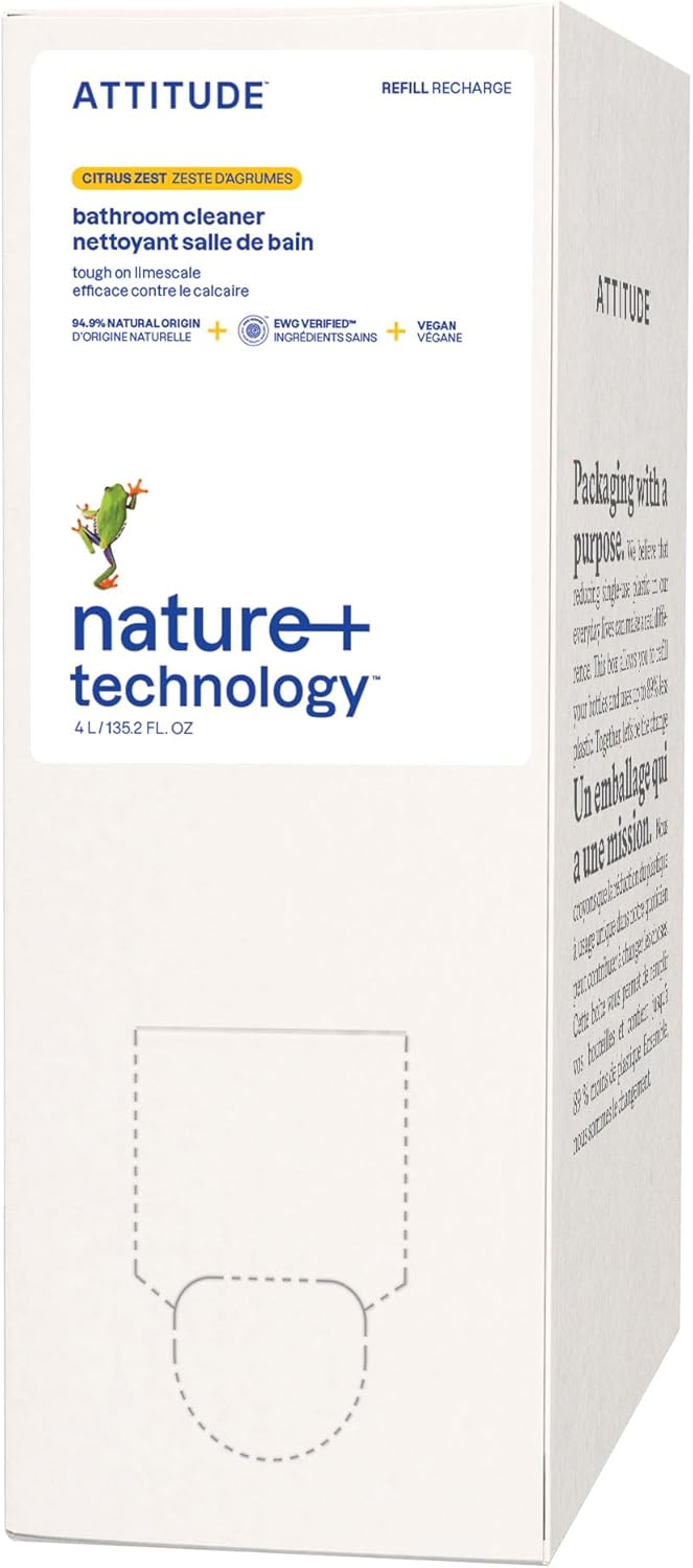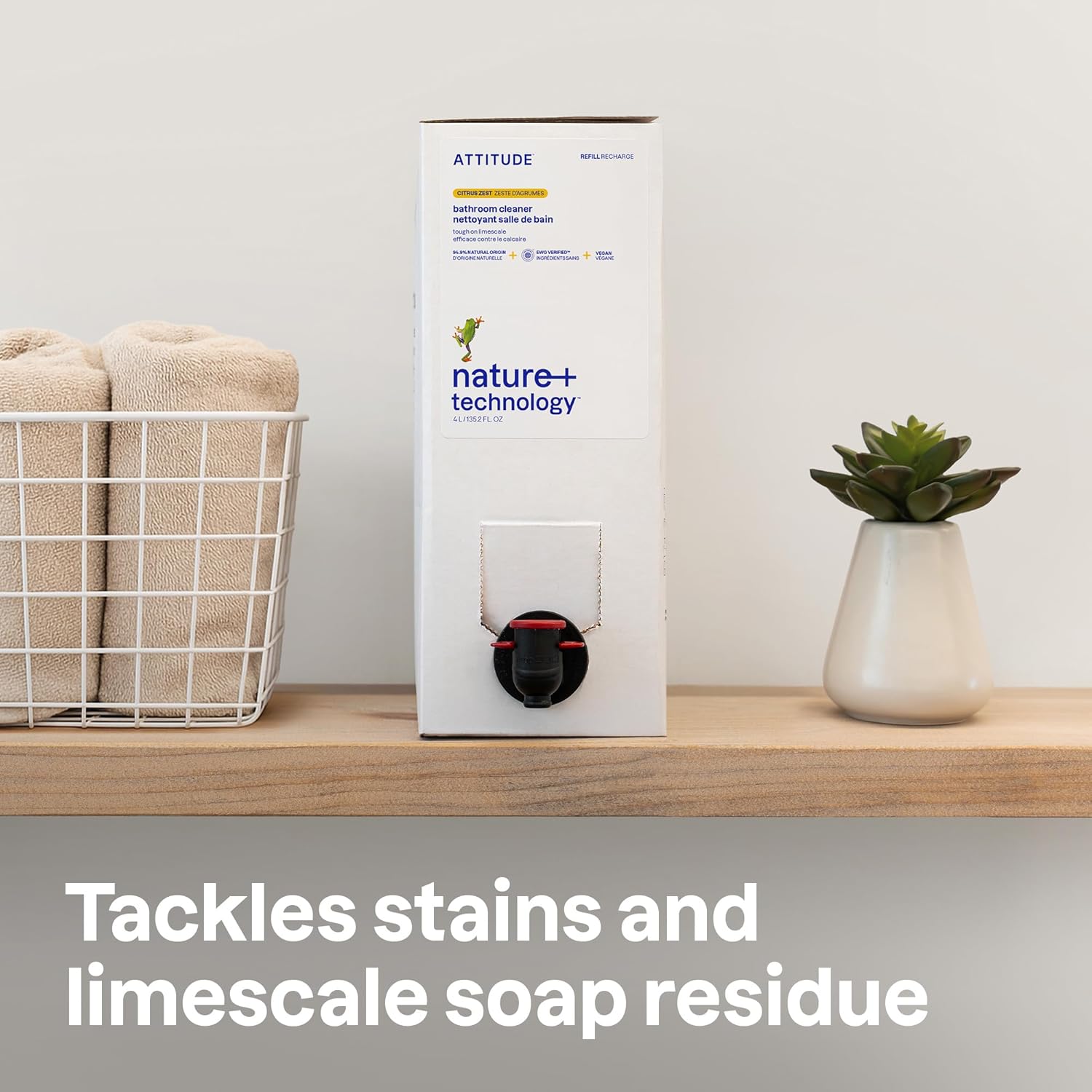 ATTITUDE Bathroom Cleaner Spray Refill, EWG Verified, Plant-Based & Vegan, Safe for Bathroom Surfaces, Tiles, Tubs, Shower Walls, and Grout, Citrus Zest Scent, 135.26 Fl Oz