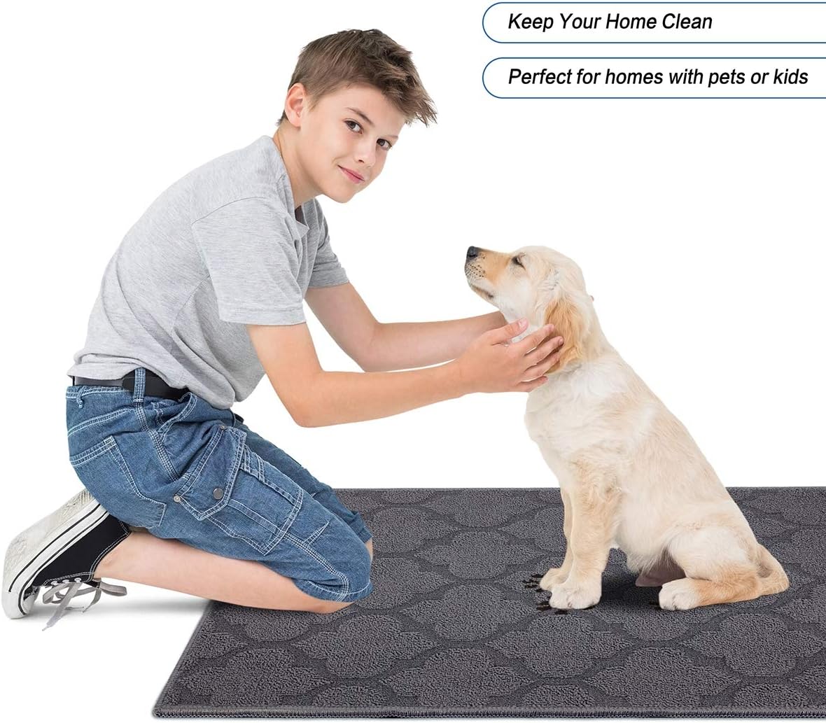 FONEYI Indoor Door Mat, Entrance Rug 24" x 36" Non-Slip Rubber Backing, Machine Washable Entry Rug, Low Profile Absorbent Dirt Trapper Doormat Inside Floor Mats for Entryway, Grey