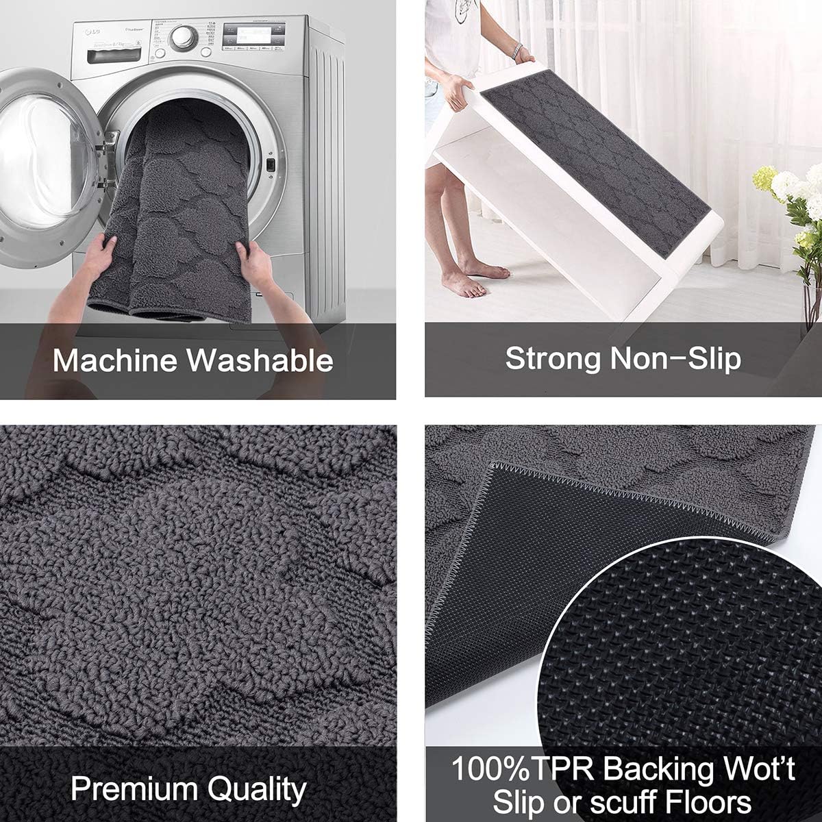 - 【NONSLIP & STAIN RESISTANT】Never worry about slipping or sliding on this non slip floor mats.This indoor door mats for entryway uses premium TPR non skid backing, which won't slip or scuff floors, provides safety and friendly for kids or pets even running through the home! The door rugs colour is not easy to get dirty, It fits very well with the simple and stylish home style, making the room more warm and comfortable. NOTE: THE INDOOR DOOR MAT MUST BE PLACED ON DRY SURFACE DURING USE.