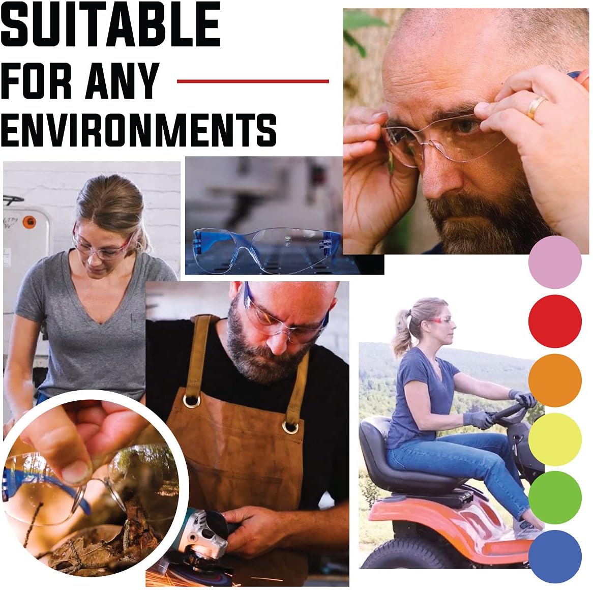 - Anti-Scratch: Full coverage and Scratch Resistant coating for the best protection for your eyes and for the maintenance of the glasses. These safety glasses for men or for women are designed for all around visibility and have a high level of direct and peripheral eye protection from flying particles or debris. Exceeds ANSI Z87.1 standards, embossed on the temple.