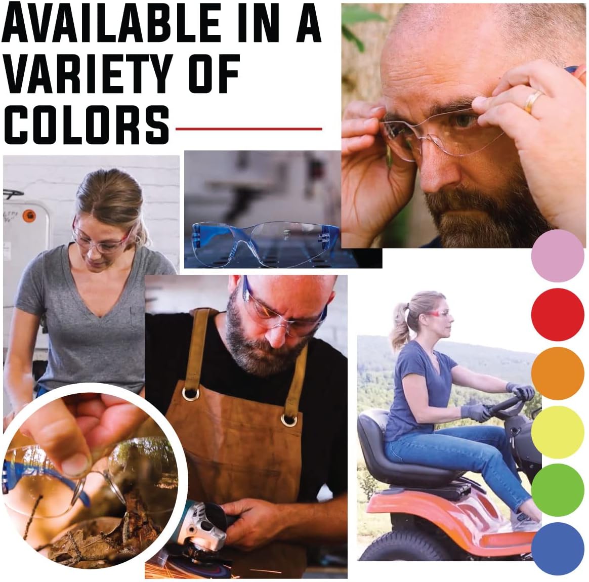 - BISON LIFE Clear Lens Assorted Color Temple Safety Glasses, Color Lens Color Temple, Pack of 12 Pairs (2 Blue, 2 Green, 2 Yellow, 2 Red, 2 Pink, 2 Orange)