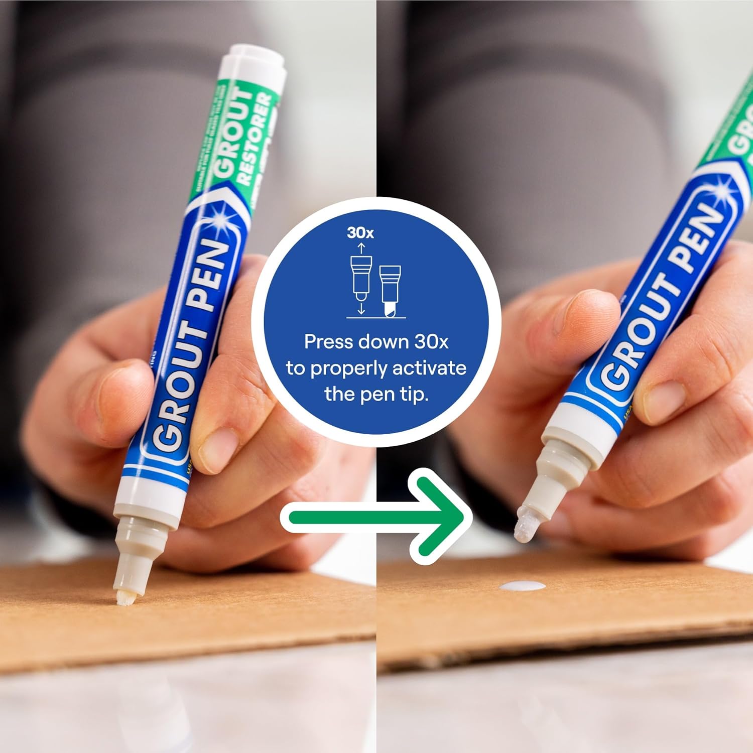 - DRY TIP: Pen needs to be primed before use, all new GROUT PENs come with a dry white tip. To activate rapidly pump the tip (30+ times) until fully saturated