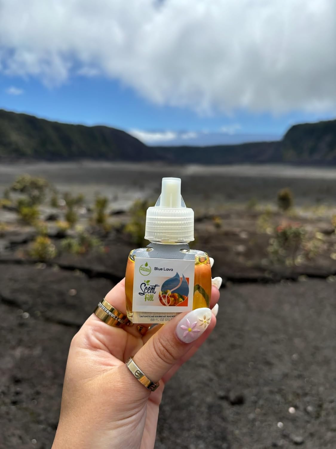 - KEEP YOUR HOME OR OFFICE SMELLING SWEET & FRUITY: Scent Fill's Volcano rests juicy lime and orange peel oils and spicy litsea cubeba fruit oil on a bed of French lavindin that simply erupts with fragrance