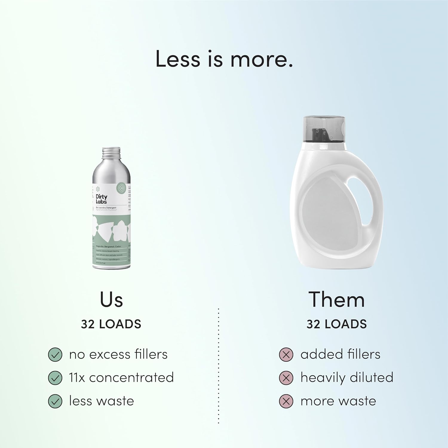 - SPECS: 8.6 fl oz = 32 loads. Signature Scent (Magnolia, Bergamot, & Cedar). Compatible with traditional and HE washers. Optimized for cold water. Certified EPA Safer Choice Partner. 97% USDA Biobased certified. No sulfates, dyes, parabens, perservatives, chlorine bleach, or CA Prop.65 Chemicals. Visit our site for more ingredients information.