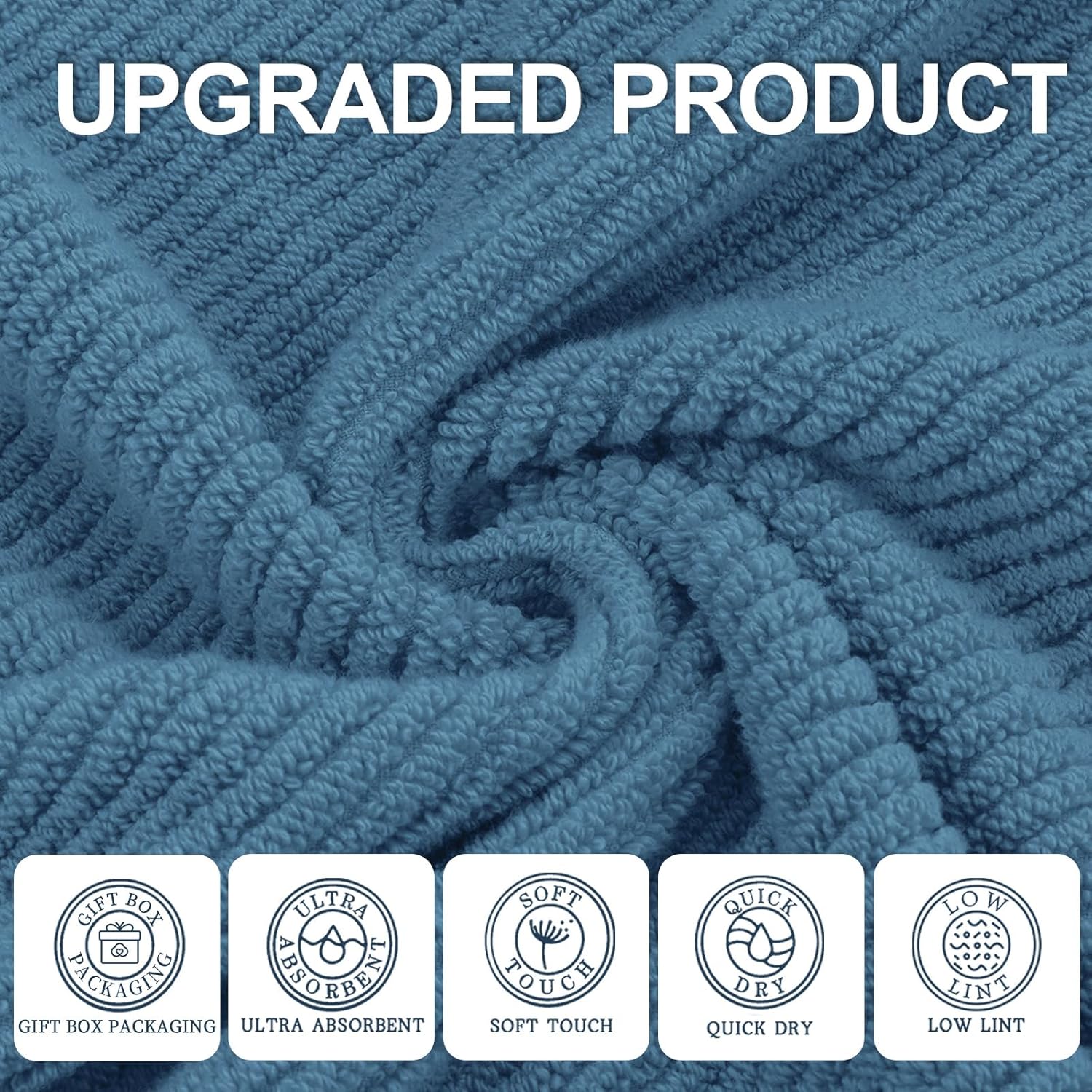 - 【QUICK-DRY, 100% COTTON, SOFT】 This towel set combines luxury softness and ultimate absorbency. They are constructed using loops of 100% cotton and a zero twist weave that quickly absorbs water. This plush towel offers a lighter weight than ordinary towels, absorb more liquid than ordinary towels, dry quickly and thoroughly, and are soft to the touch. fluffy softness for the ultimate comfort in your bathroom