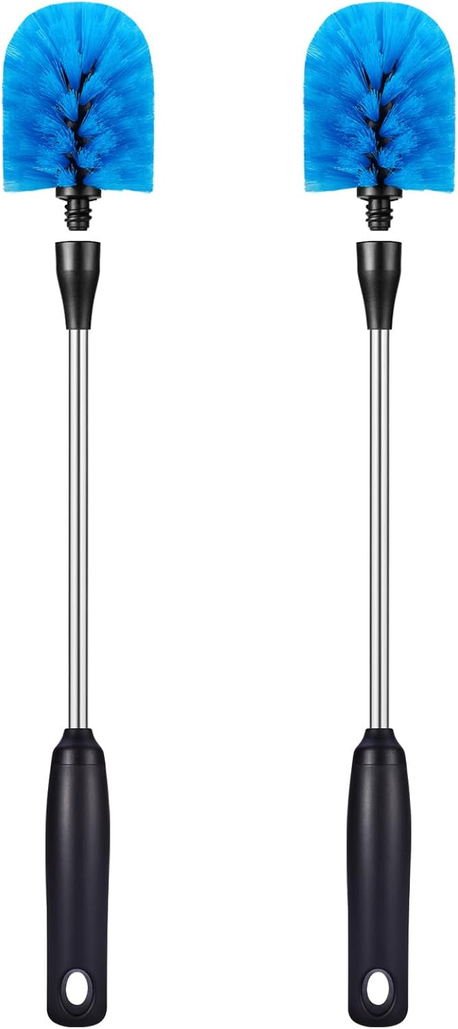 - Perfect For Narrow Neck Bottles: Round head for optimized cleaning; with its long reach handle and stiff, flexible bristles, bottle brush can easily reach inside bottles, pitchers and carafes, easily scrub away dirt in tall, narrow containers