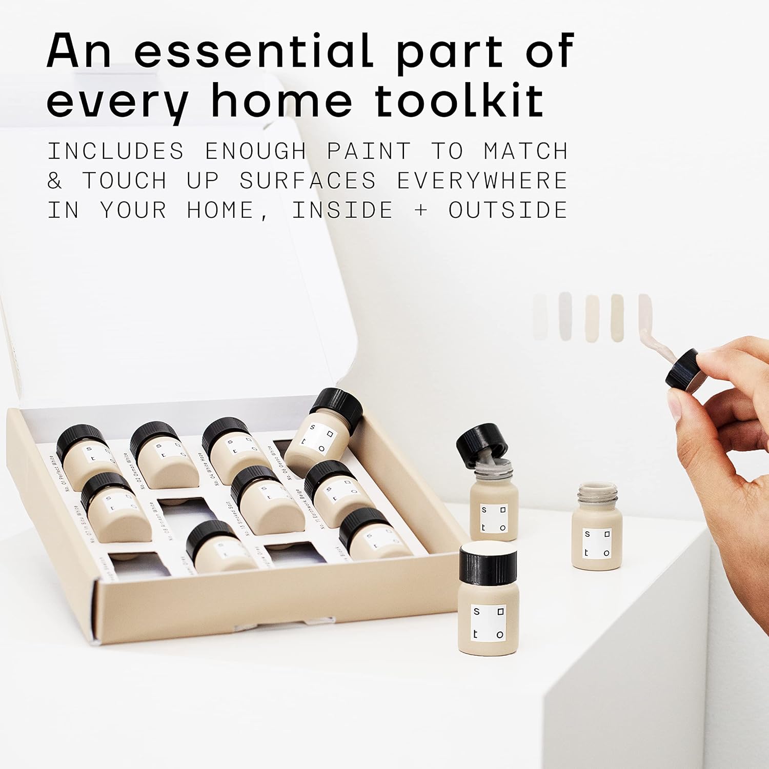 soto Paint Touch Up, Set of 12, Multi-Surface, Matte & Satin Finish (Neutrals) - White, Beige + Black Scratch Repair for Furniture, Walls, Cabinets, Trim, Doors, Indoor/Outdoor