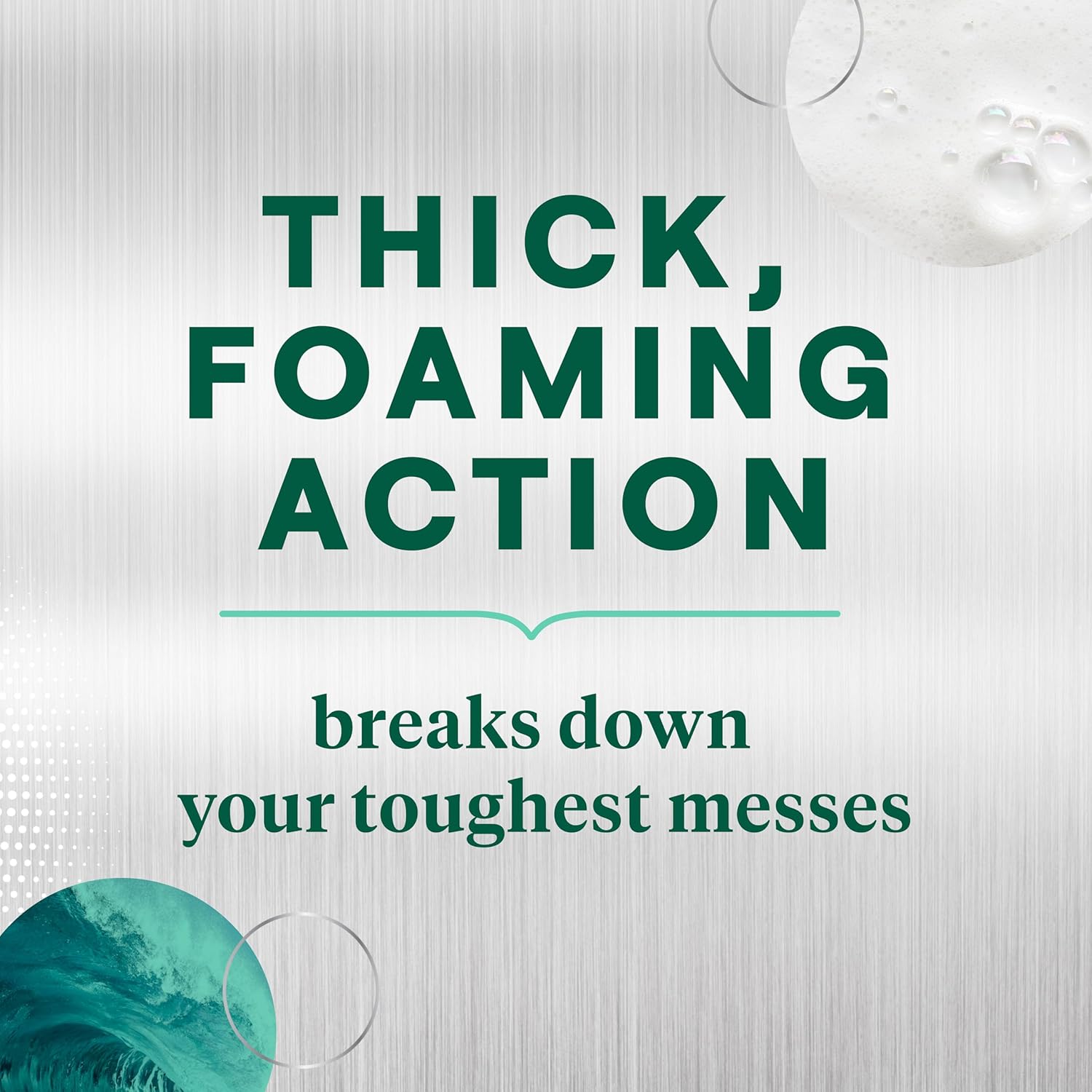- Thick foaming action breaks down the toughest messes, so you don’t have to.