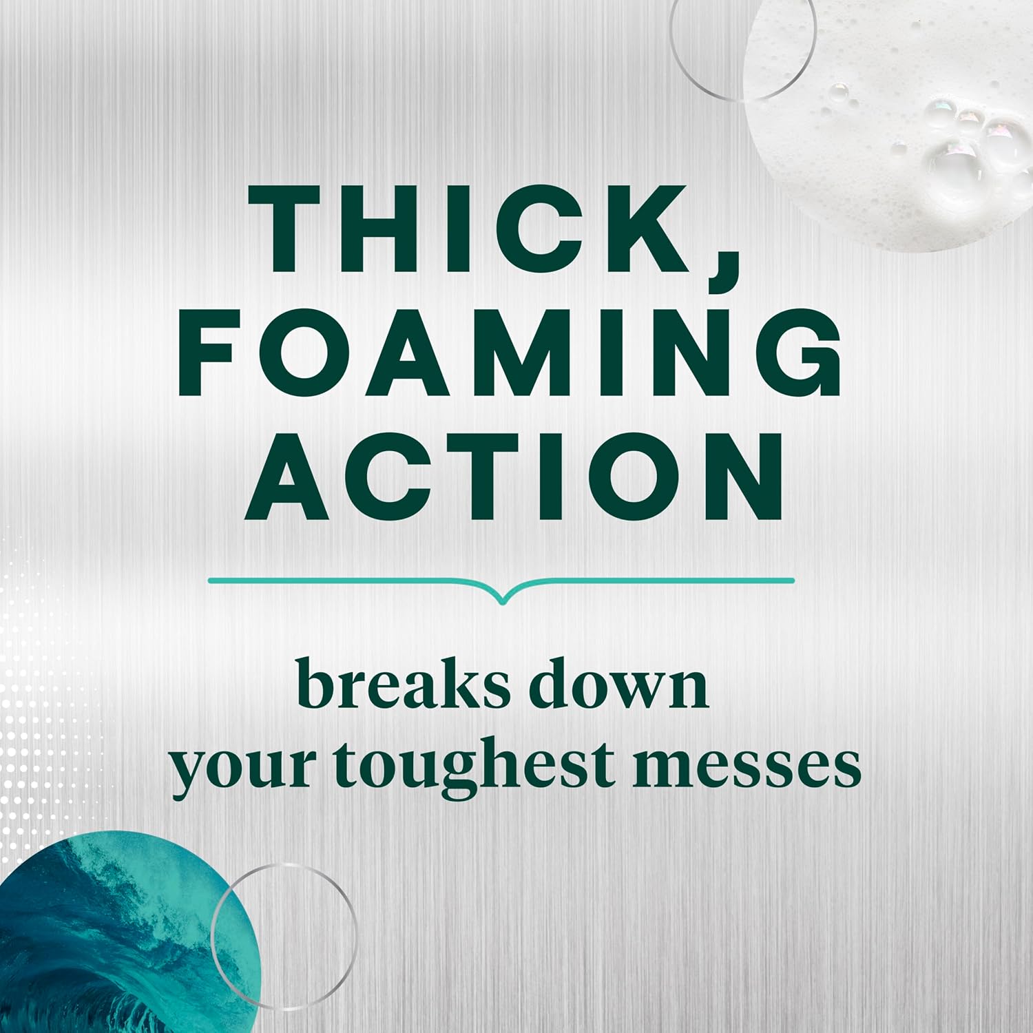 - Dishwashing liquid with a thick foaming action that breaks down the toughest messes, so you don’t have to