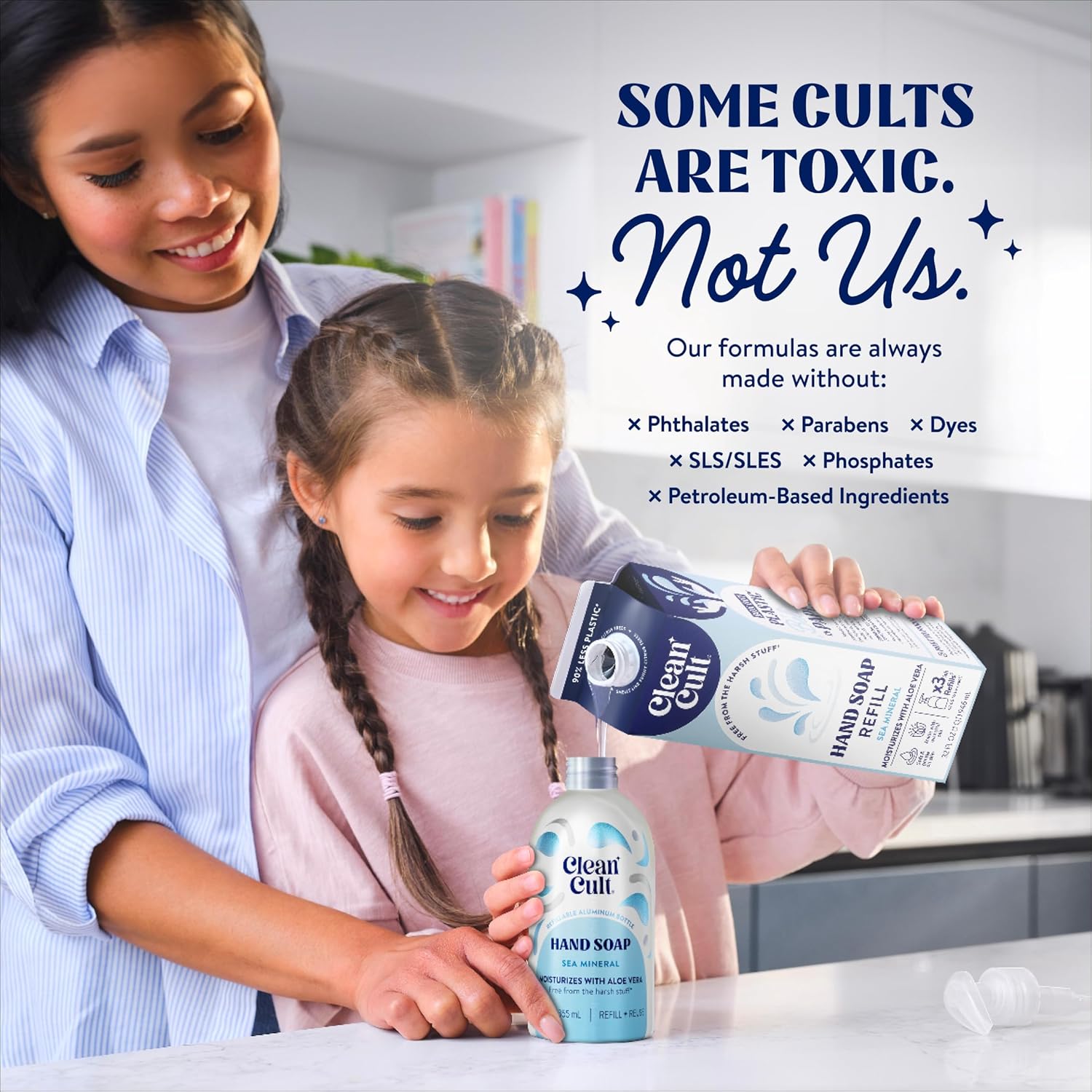 - A Cleaner Kind Of Cult: Choose our liquid hand-wash soaps for a cleaner approach to hygiene. Our formula gently cleans and promotes healthier, fresher hands and is free of phthalates, phosphates, SLES, SLS, dyes, and parabens. Delight in nature's goodness with every wash.