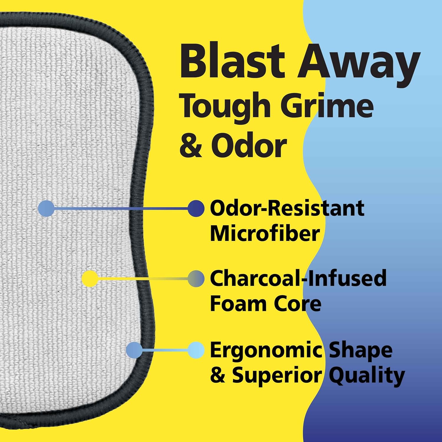 Fresh Scrub-N-Wipe Pad by Tuff-Scrub, 6-Pack, Antimicrobial & Charcoal Foam for Odor Control, Microfiber, Multi-Surface, Non-Scratch, Dual-Sided, Machine Washable, Kitchen Sponge (Large)