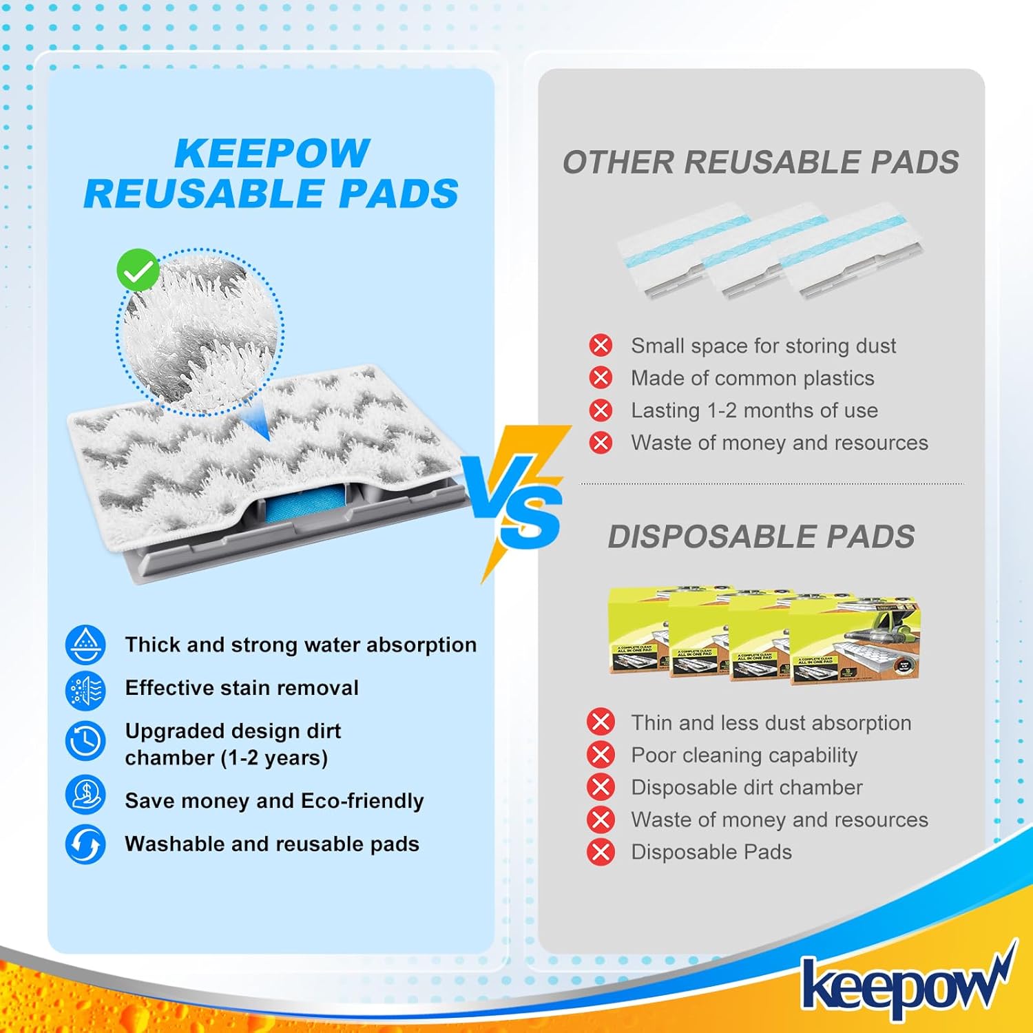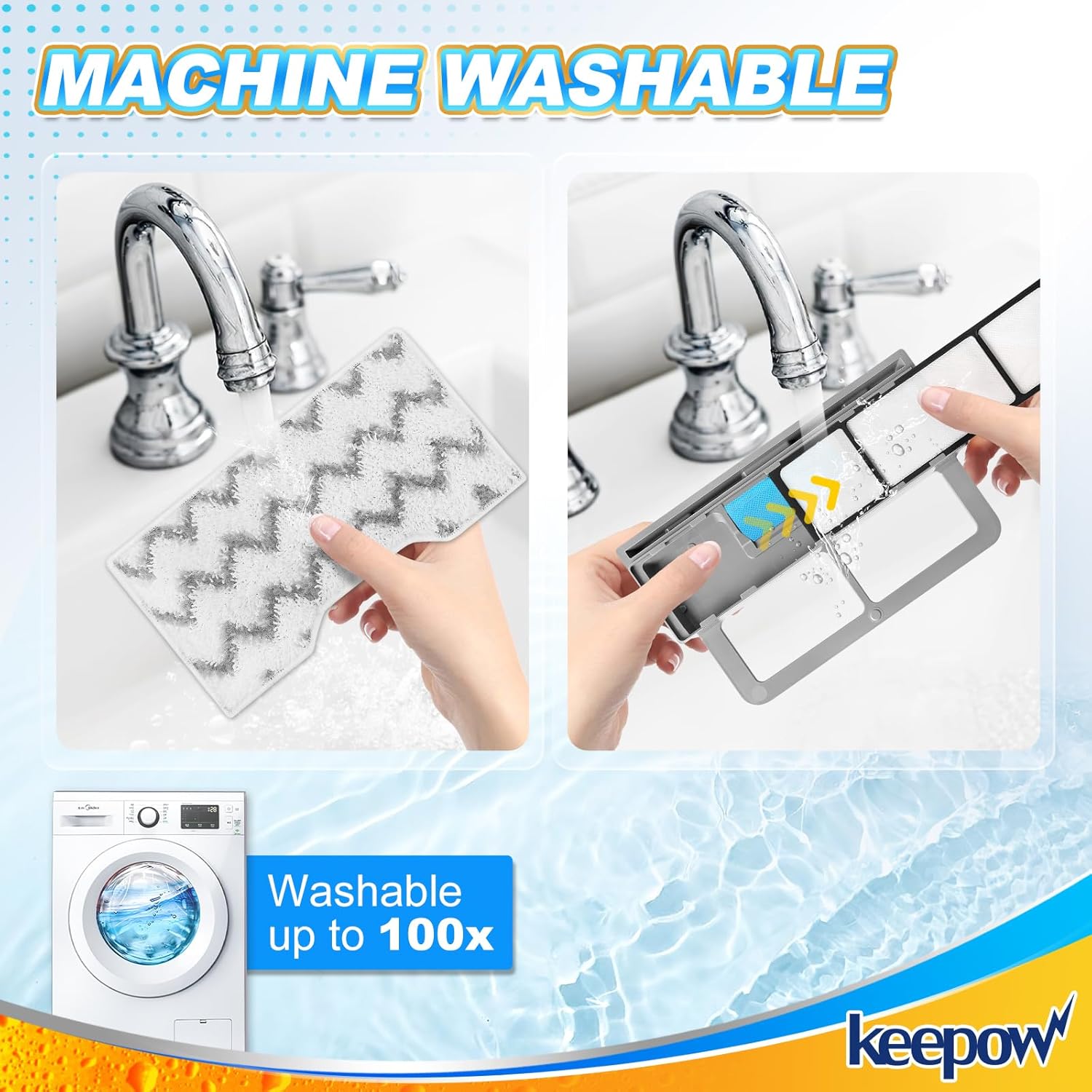 - 【REUSABLE & MACHINE-WASHABLE MOP PADS】The mop vac pads are washable and reusable, you just throw it into your washer after using to renew the fiber and re-use, no more dirt contact. Compared to disposable pads, it can reduce disposal and is more environmentally friendly. The package comes with a laundry bag