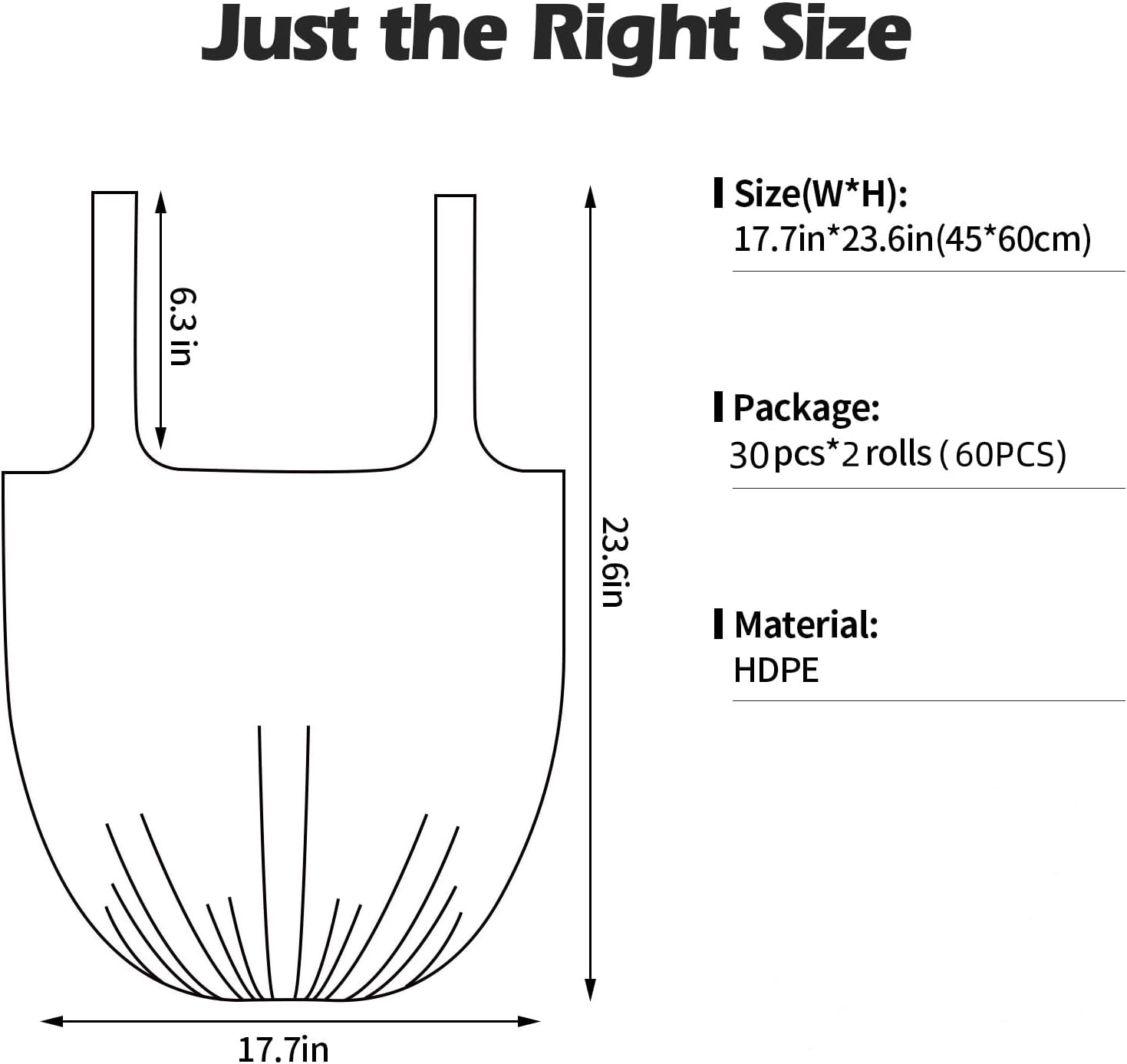 - 【Applicable Size】: Our Small Portable Trash Bags dimensions are 17.7 inches * 24.5 inches,60 counts of 2 Rolls,suitable for 2-4 gallon/12-15 liter trash can.