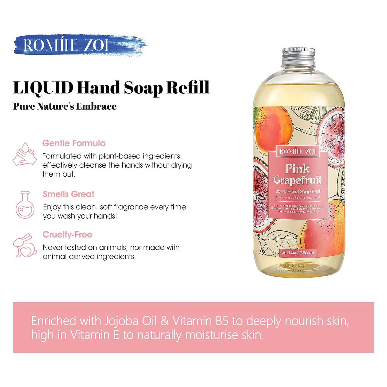 ROMIIE ZOI Liquid Hand Soap Refill, Pink Grapefruit, Gentle & Moisturizing Formula, 750 ML/ 26 FL OZ