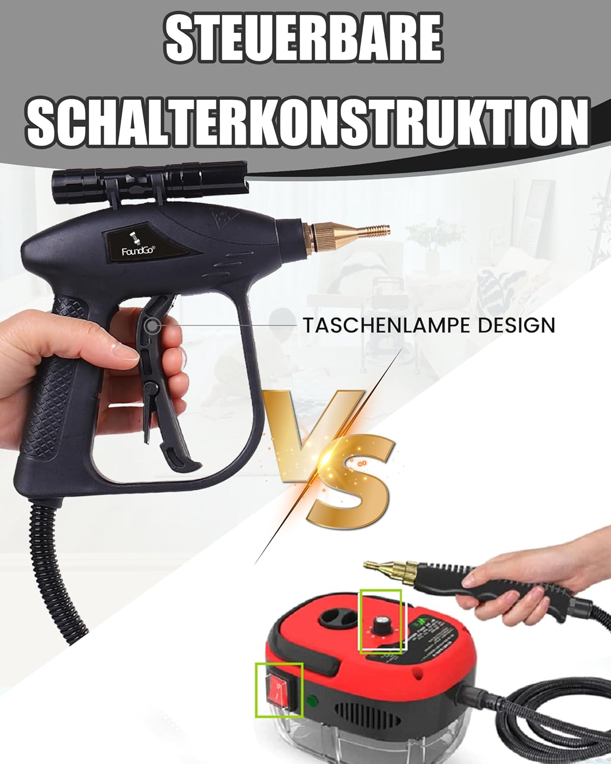 - 【Powerfully Clean the Toughest】Handheld steam cleaner, working over 1700 watts, can emit 115℃(239℉)high pressured flow of steam that is excessively powerful to deeply clean and make things in your home “new” again with no effort.Aim this upholstery cleaner at stain, grime, even the hard gooey spots that regular cleaning cannot dissolve, it melts right off.