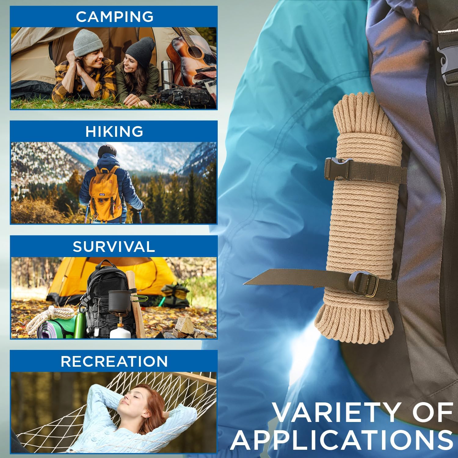 - MUST-HAVE: General Application Rope is widely used for tying down equipment, weaving hammocks, as window sash cord, clothes line cord, moving rope, laundry line, flagline rope, etc. The thin cotton rope is essential for every home. Always have it on hand in your car, garage, garden or home.