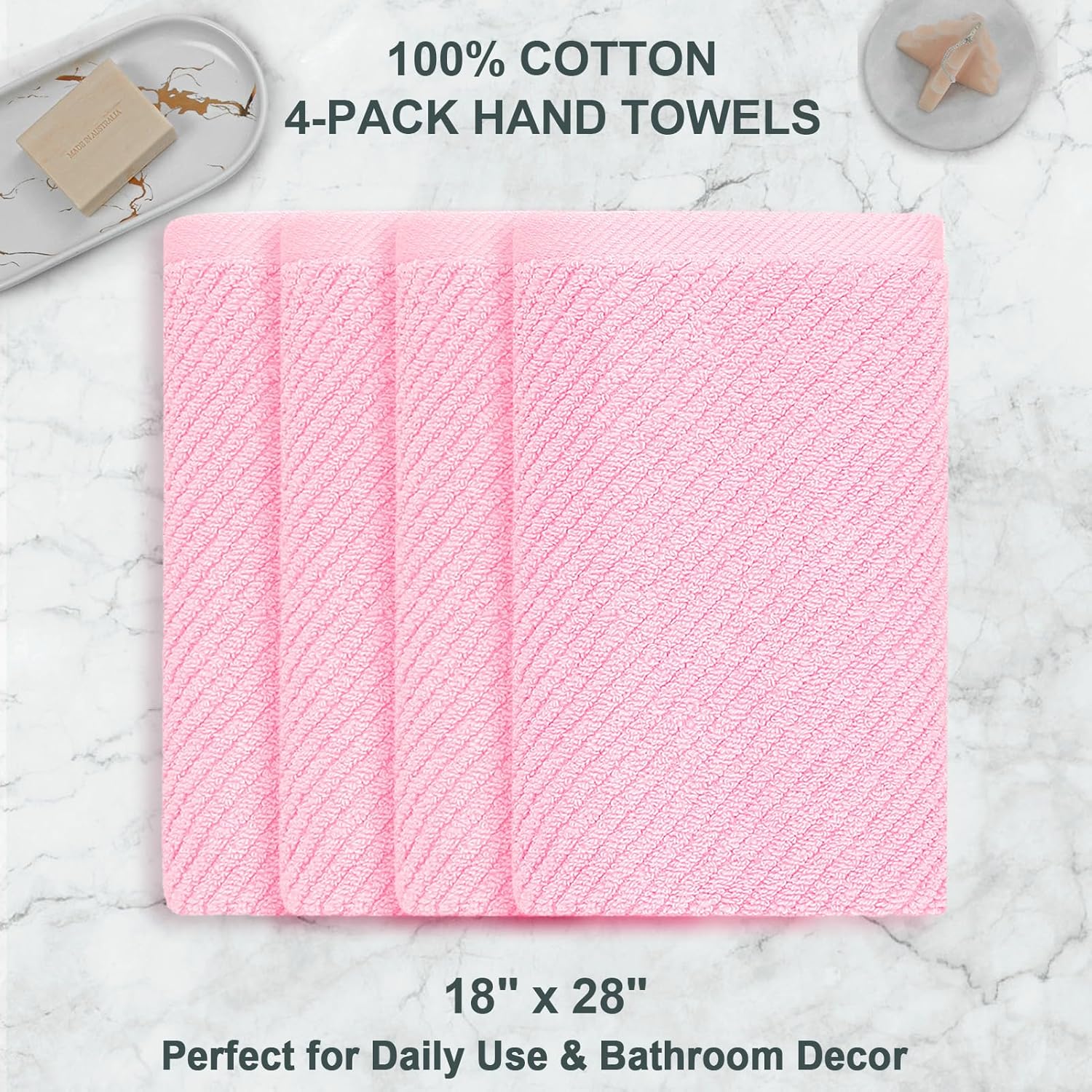 VOOVA & MOVAS Pink Bathroom Hand Towels Set of 4, Large 18" x 28" - 100% Cotton | Quick Dry | Light Weight | Thick | Soft | Absorption, Luxury Hand Towels for Showering, Bathroom Essentials Set