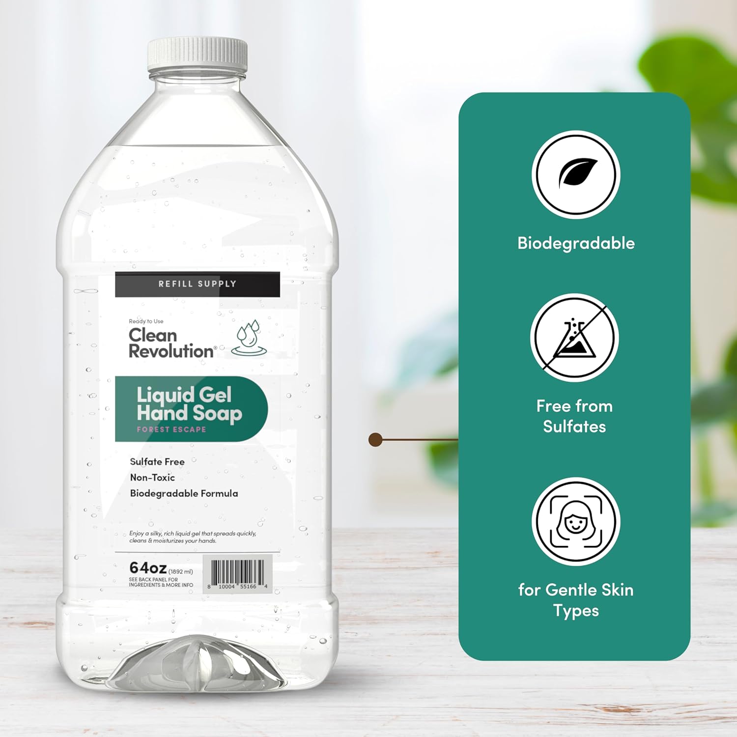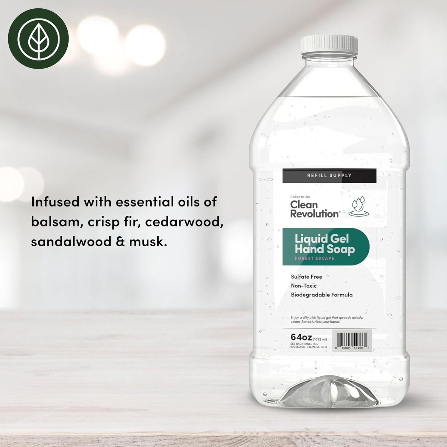Clean Revolution Liquid Gel Hand Soap, Silky Rich Liquid, Quick Lather, Fast Rinsing, Contains Real Essential Oils (Forest Escape) 64 Fl Oz