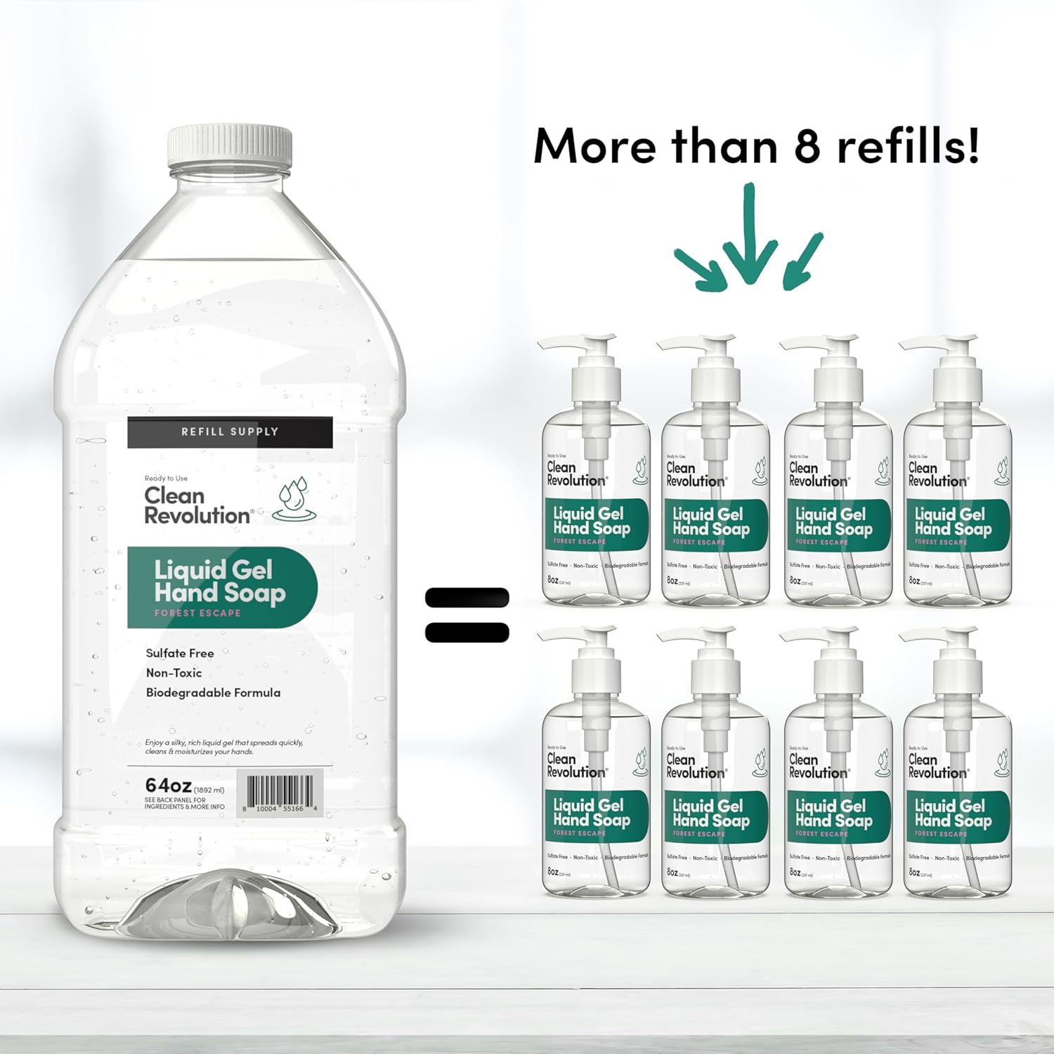 - REFILL & REUSE: 64 oz refill supply container is designed to deliver exceptional value while also reducing plastic waste from individual single-use bottles, Packaging is 100% recyclable