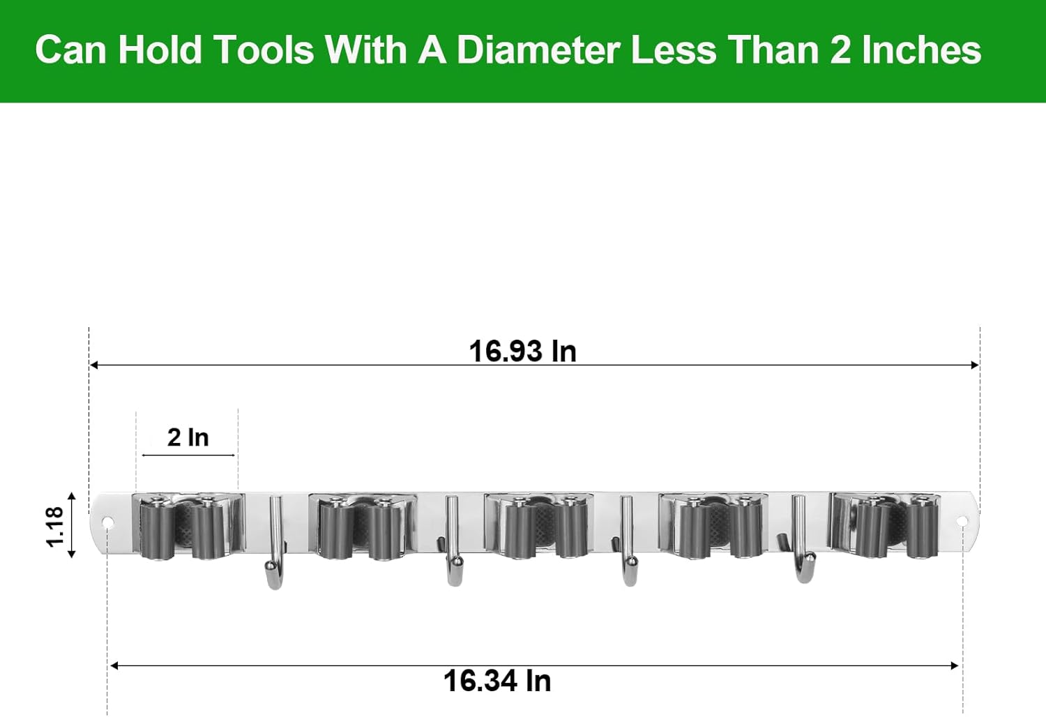 - [Sturdy & Non-slip] The broom and mop holder wall mount with 5 slots and 4 hooks is made of rustproof 304 stainless steel, which is beautiful and much more durable than plastic materials, It's non-slip high elasticity clips can holds your broom, mop, umbrella or other garage tools firmly. You can install the tool storage rack with self-adhesive or screws to mount on the wall.