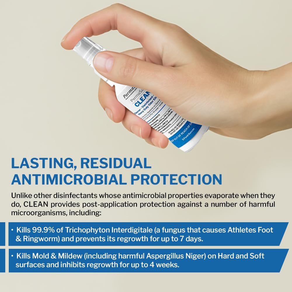 - PROVIDES LASTING, RESIDUAL PROTECTION against multiple harmful microorganisms including T. Interdigitale (fungus that causes Athletes Foot, Ringworm & Keratomycosis) for one week, and Aspergillus Niger (mold that can cause lung, ear & other infections) for up to 4 weeks.