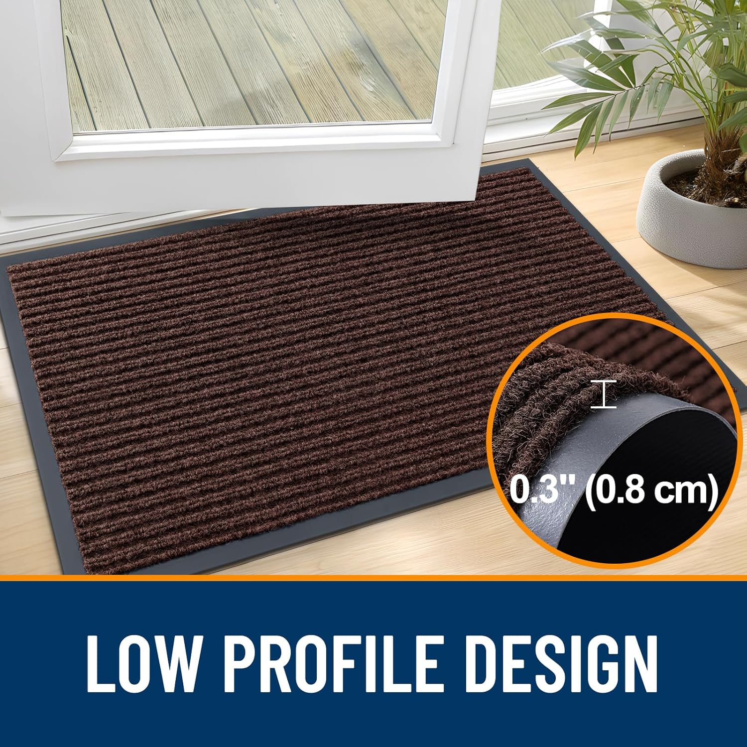 - [LOW-PROFILE DESIGN: IDEAL FOR ANY DOOR] The OLANLY door mat features an ultra-slim 0.3-inch profile, ensuring smooth door clearance and easy access. This space-saving design makes it ideal for any entryway while maintaining full functionality.