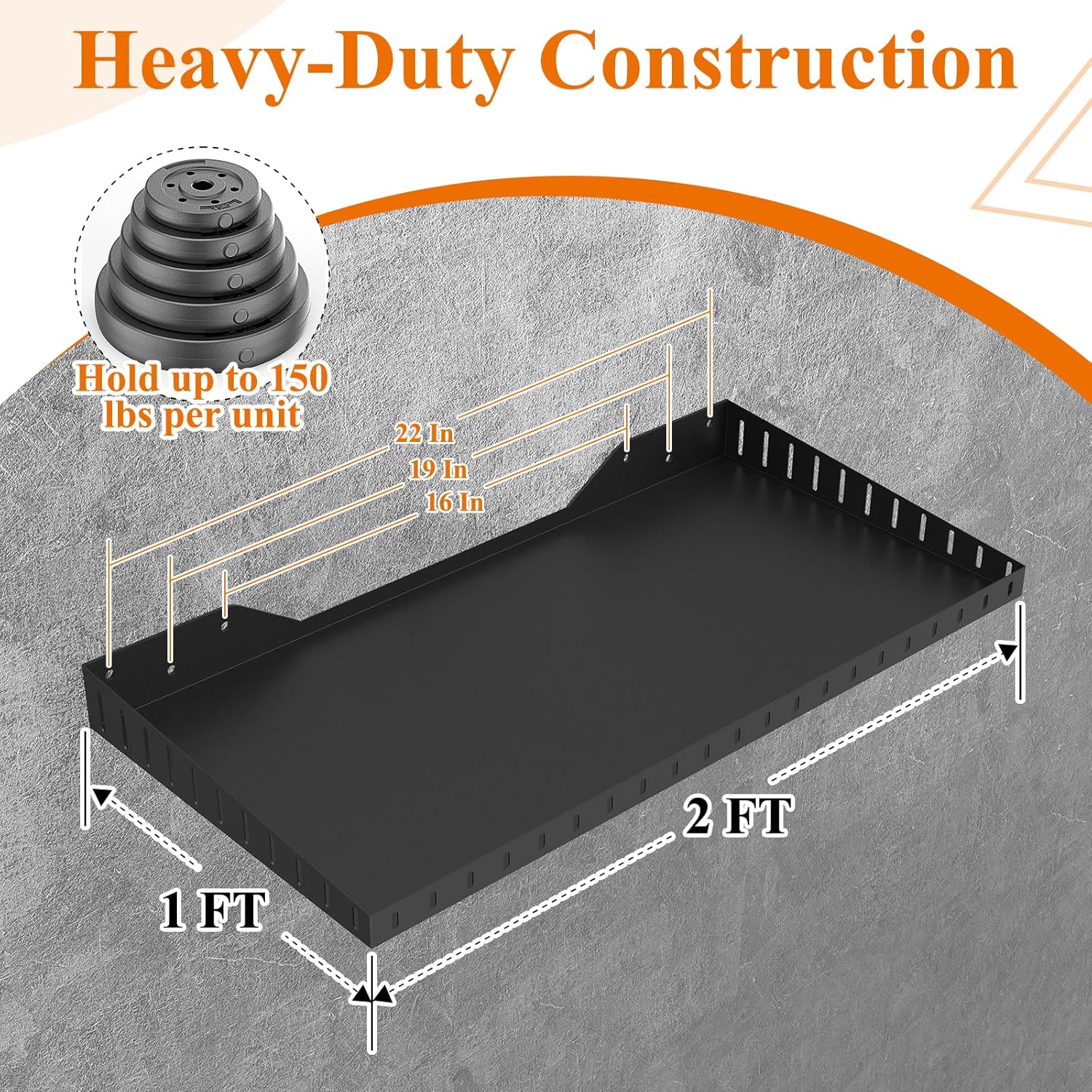 - Upgraded & Enhanced Load Capacity: We have upgraded our product to now support 16-inch standard mounting, addressing the previous design flaw. Thanks to its heavy-gauge steel construction, this unit can securely handle a high load of up to 150 lbs in total. This superior carrying capacity ensures a safe and stable storage solution for all your heavy-duty items.