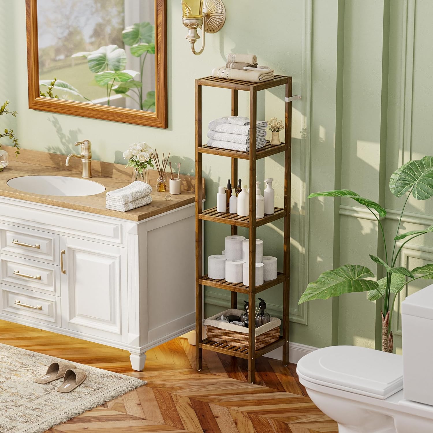 - ★ EASY TO ASSEMBLY & STURDY: With included illustration and tools, just follow the instructions and tighten the screws will set it up; All solid bamboo parts are fastened by galvanized screws, making this toilet rack very stable and wobble-free, each shelf holds up to 33 Lbs.