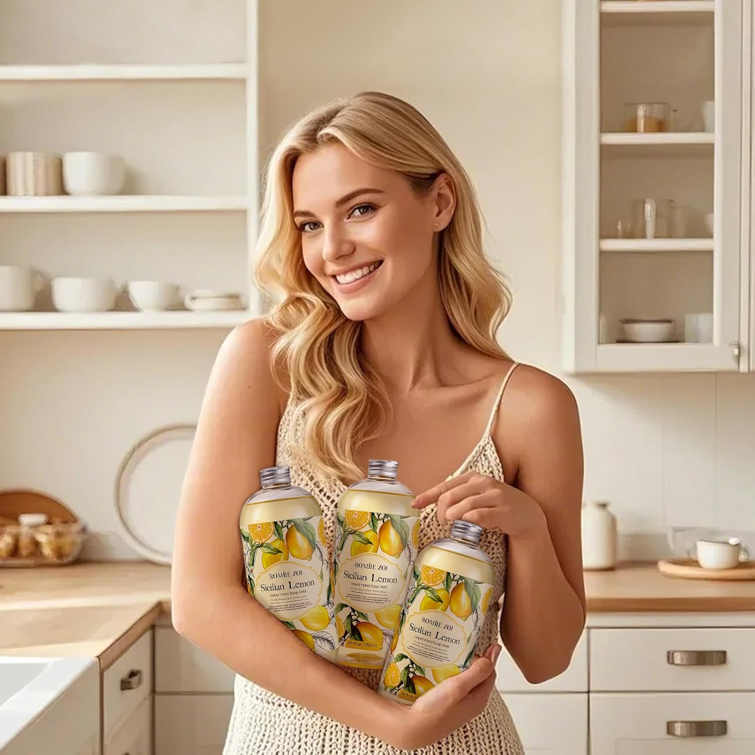 ROMIIE ZOI Lemon Scent Liquid Hand Soap Refills - Natural, Gentle & Moisturizing Formula - Family Size 3 Pack, Ideal for Liquid Soap Dispensers in Kitchen & Bathroom