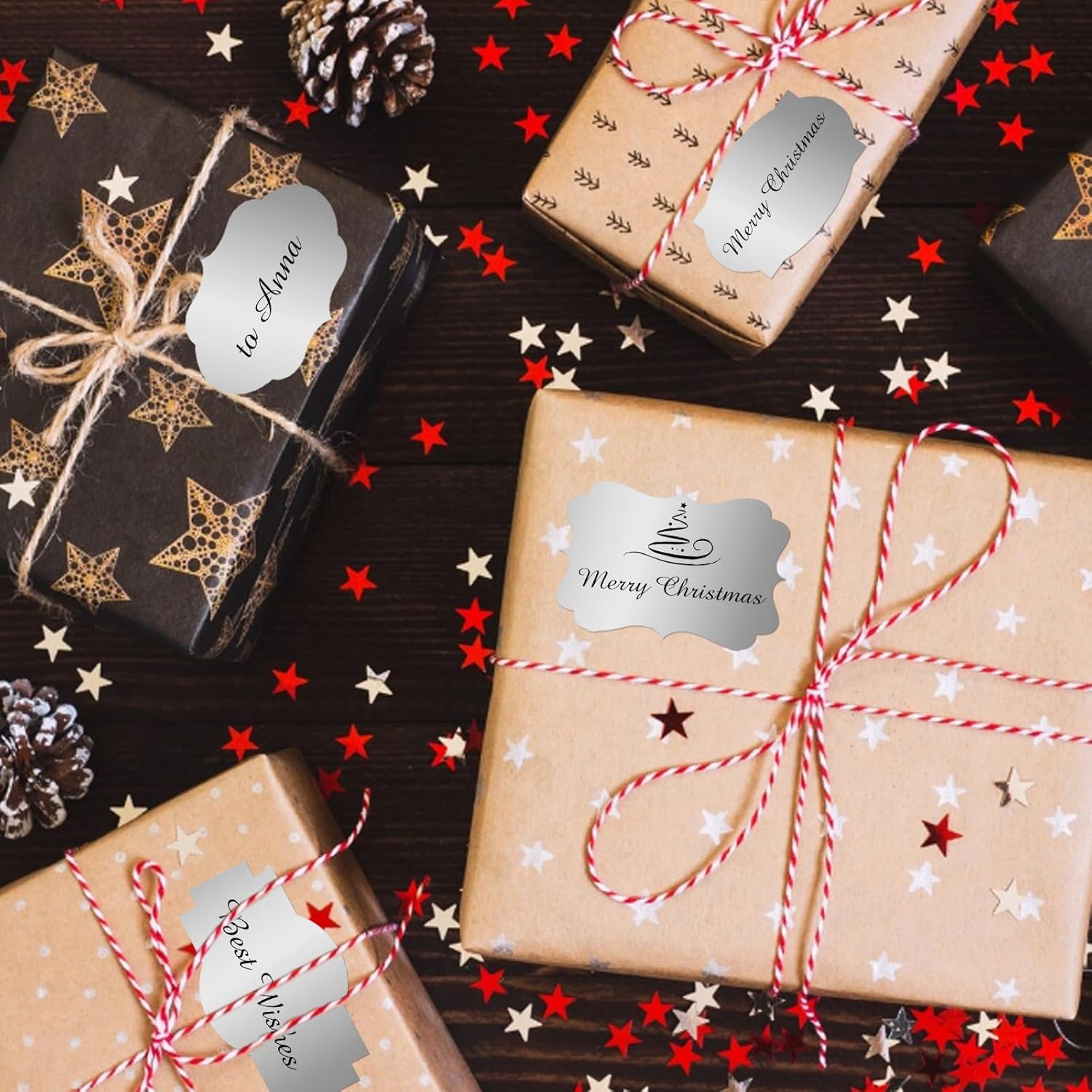 - Just need to peel off the sticker, write words and stick them where you want. With different color paper element, these sticker labels can not only be applied as Christmas gift tags, but also for wedding, birthday, mailing labels, name tags, etc.