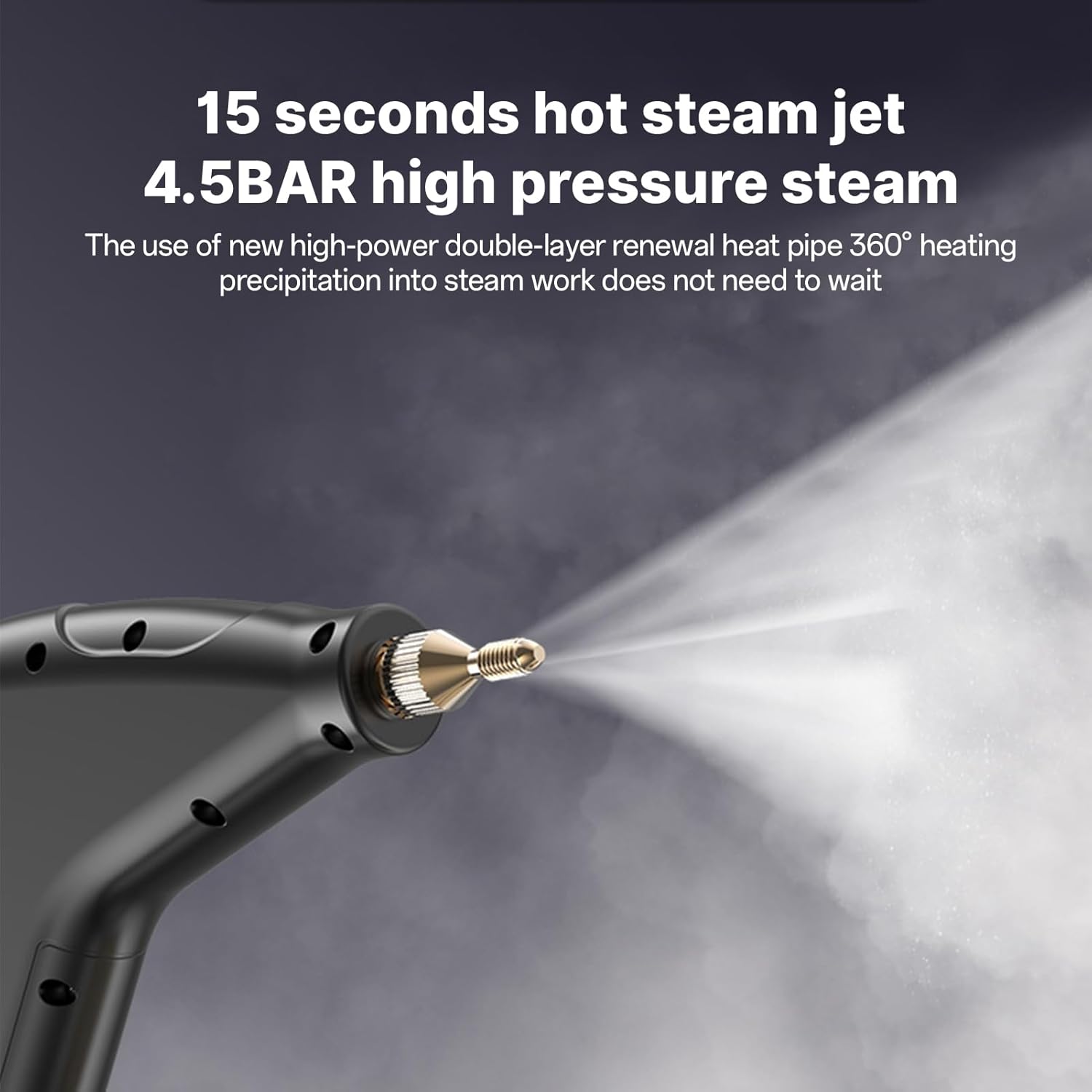 - 【Deep Cleaning】Deep steam cleaner with 1500W high power, can emit 105℃/221℉ high temperature and 4.5 Bar high pressure, 15 seconds quick heating. Quickly disintegrates stains and penetrates into various gaps and corners to disintegrate and remove old dirt.