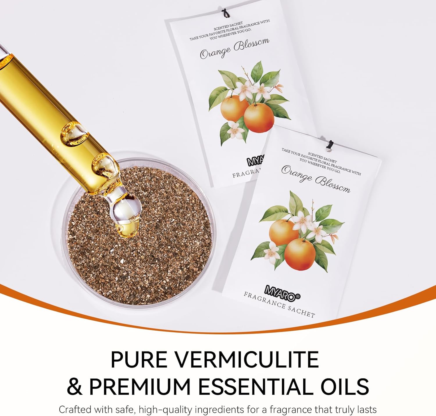 - MYARO Orange Blossom Sachet Bags: Includes 12 scented sachets (each bag size: 4.13 inch x 2.76 inch). Our natural fragrance will take you on a journey with the fresh scents sachet packets