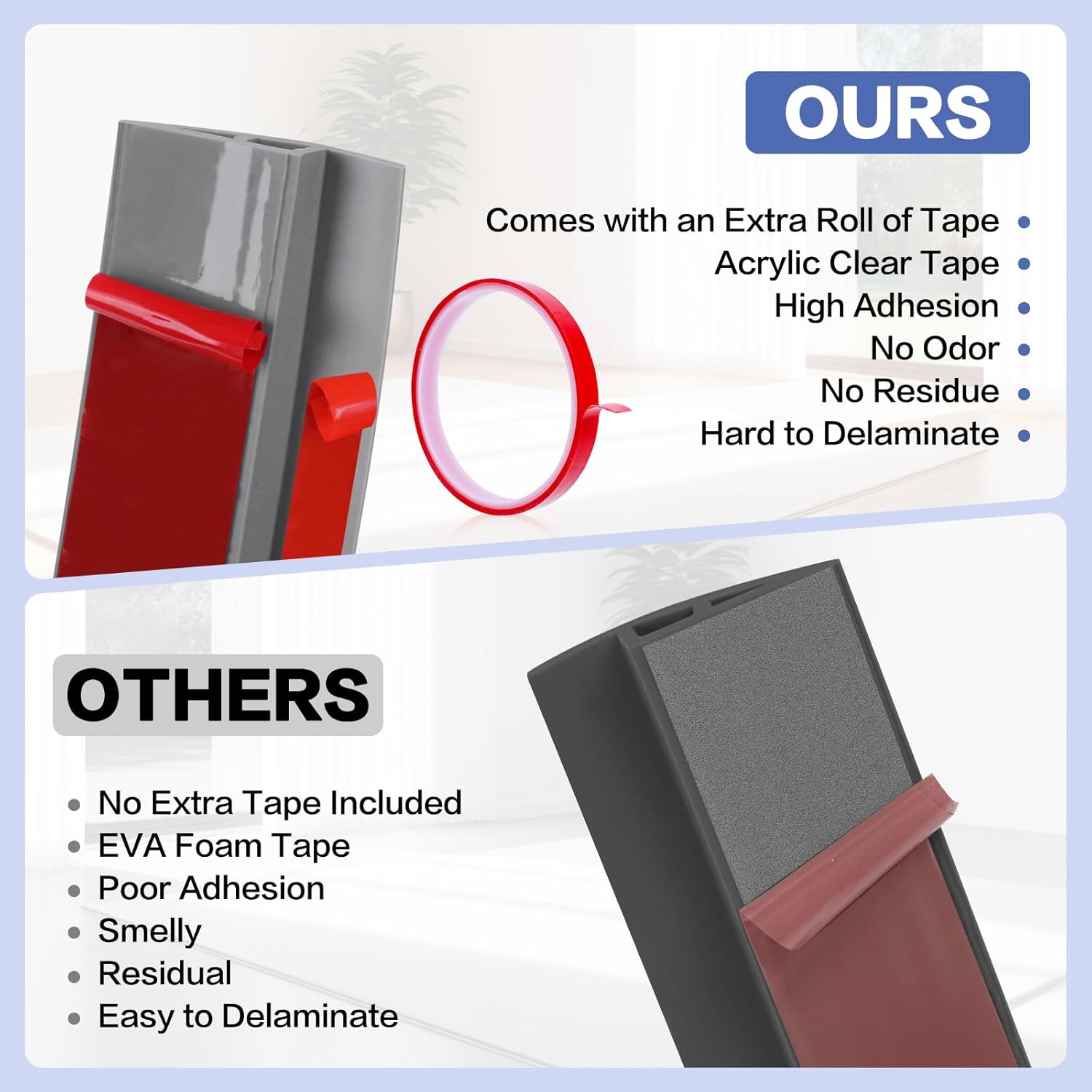 - Self-Adhesive Design: The door to tile transition strip reducer features an upgraded design with dual self-adhesive strips, providing a stronger, more secure hold. Installation is quick and simpleβjust peel and stick without the need for drilling, preserving your floors