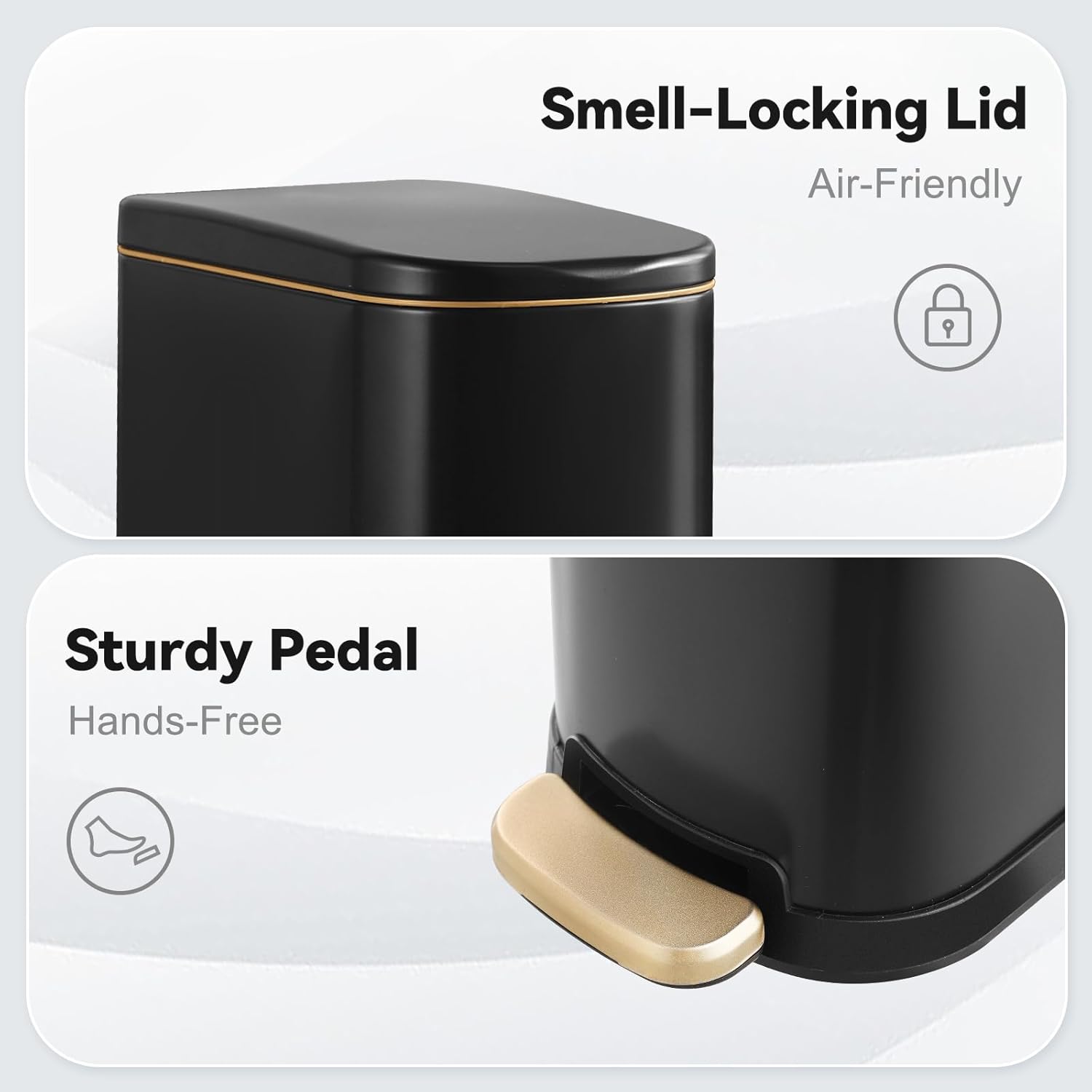 - Quiet Soft-Close Lid: Say goodbye to noisy trash cans! Our soft-close lid closes gently and silently, reducing disruption in your home or workspace. Whether you're disposing of waste late at night or in shared spaces, this feature helps maintain peace and quiet while keeping the lid in excellent working condition for long-term use