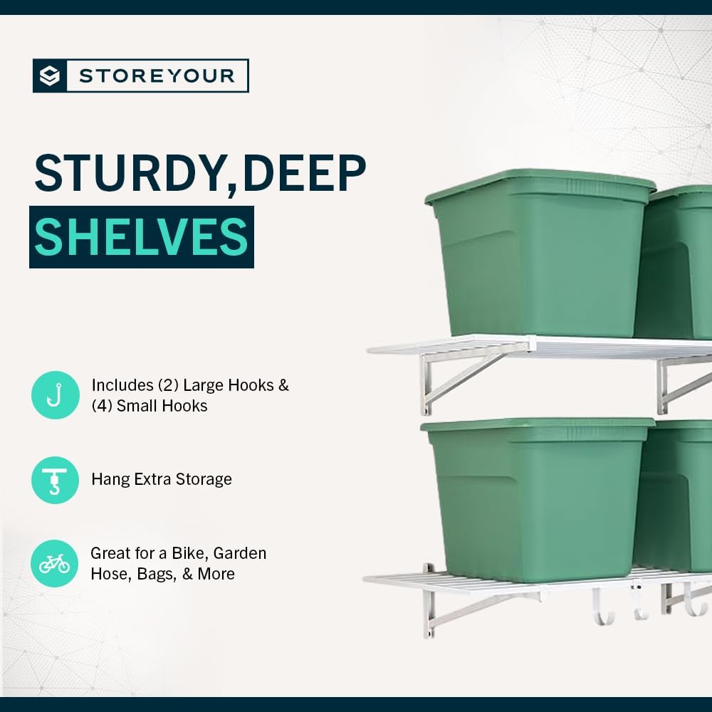 - EASY INSTALLATION HARDWARE INCLUDED – Designed for fast setup with wall brackets and heavy-duty hardware that works with standard wall stud spacing. Perfect for anyone setting up wall shelving in garages, sheds, laundry rooms, or closets. No guesswork—just a secure wall shelf system that’s built to last.