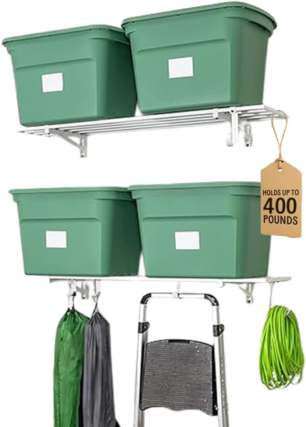 - HEAVY-DUTY STORAGE SHELVES – This 2-pack of wall-mounted garage shelves offers dependable, space-saving storage for any setup. Available in a range of sizes to suit your space, each shelf supports up to 200 lbs—ideal for storing bins, tools, tires, and gear. A solid pick for maximizing wall shelves in your garage, shed, or utility room.