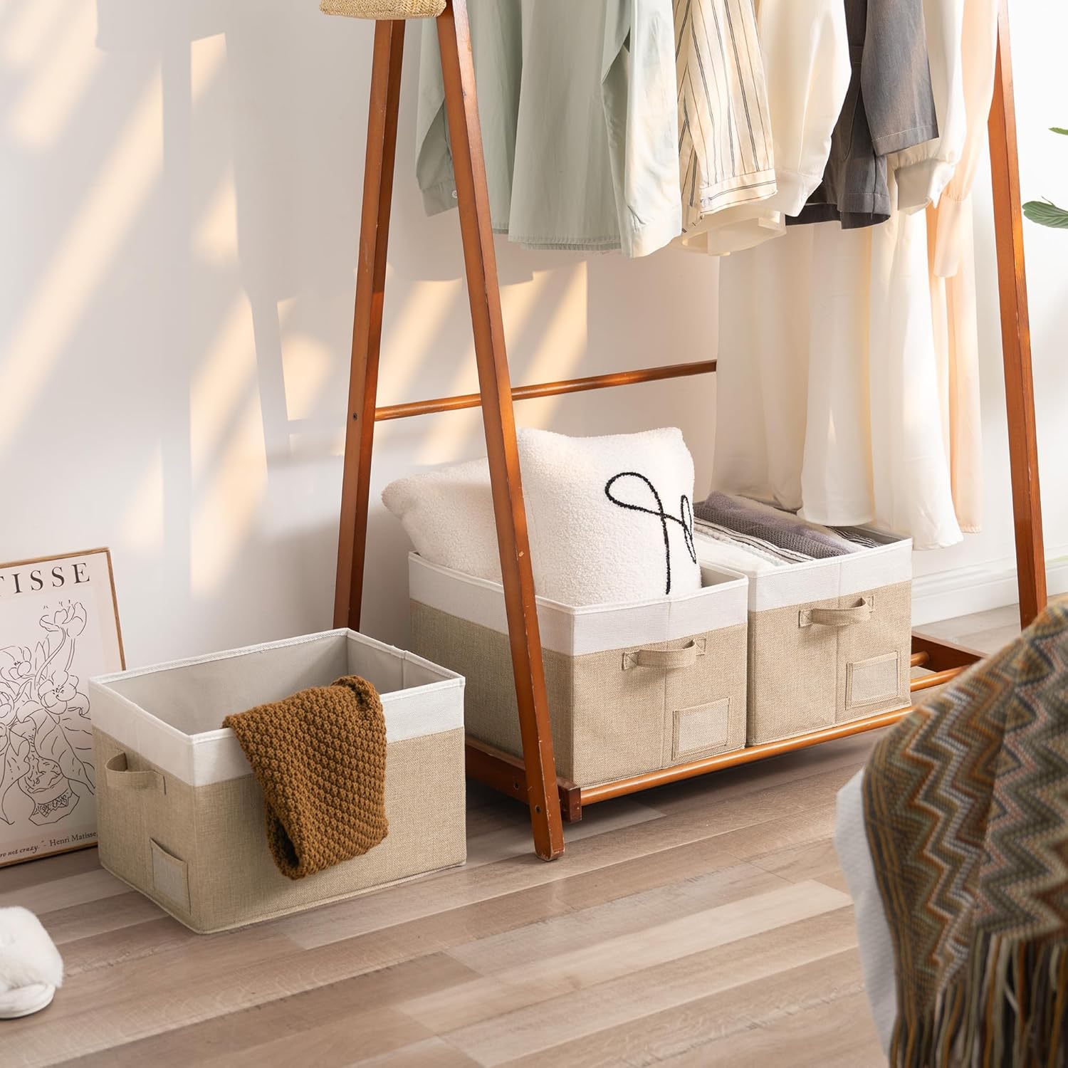GRANNY SAYS Closet Storage Baskets for Shelves, Large Fabric Storage Bins, Collapsible Clothing Storage and Organization, Decorative Storage Bins, Khaki&Ivory, Extra Large, 3-Pack
