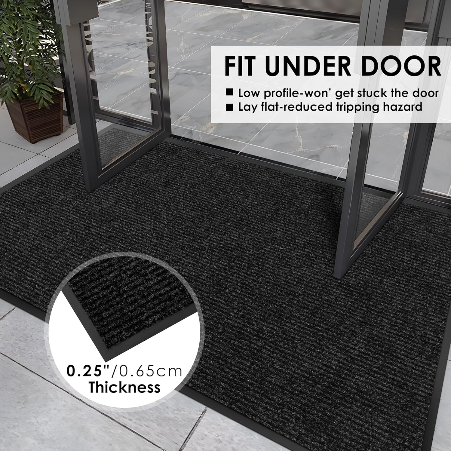 - Durable & Low Profile: Outdoor mats for front door is suitable for places with high traffic like commercial or house entryway. It is highly durable, stain-resistant and fade-resistant, ensuring it maintains its quality even in busy areas. 0.35 inches low profile design won't get stuck doors.