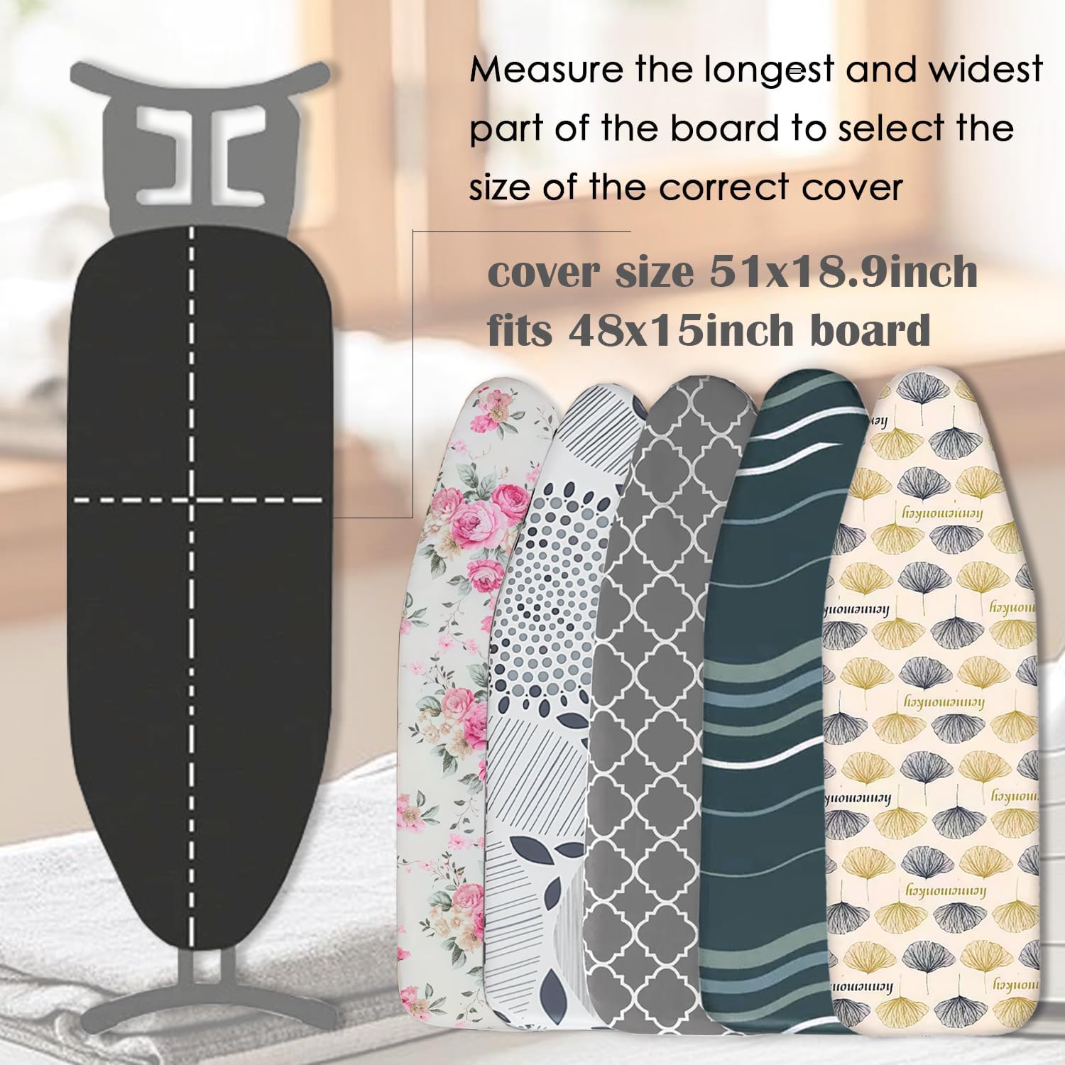 - 【Size Information】:-Made of 100% cotton fabric material, this ironing board cover and pad fits standard sizes ironing board of 15inch wide and 48inch long.Please measure your ironing board size before ordering.