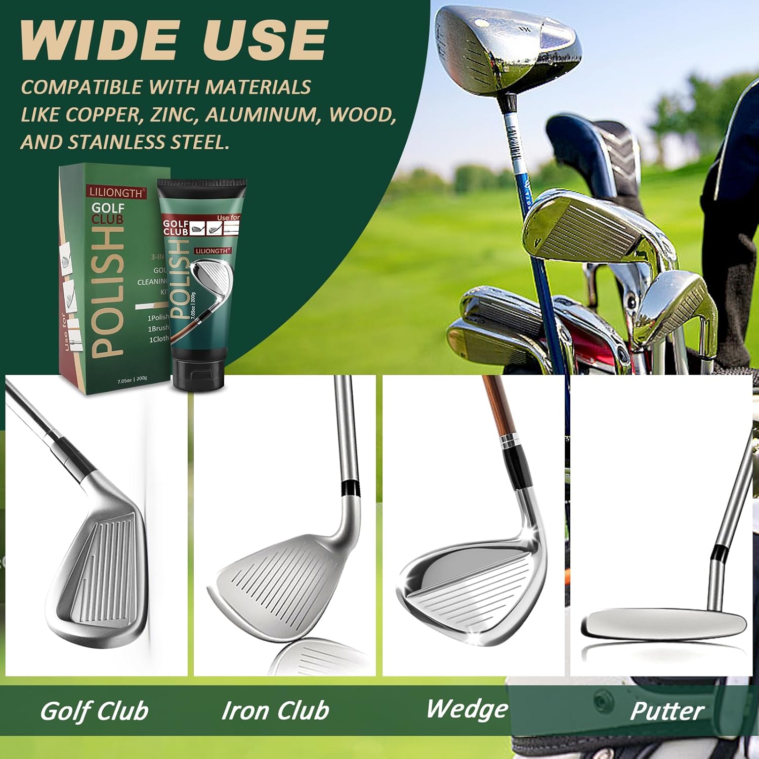 - Tough Rust, No Problem - When moisture leaves big, stubborn rust stains on your clubs, this golf club polishing kit is the answer. Just use our golf cleaning kit and watch those rust spots disappear. Your clubs will shine like new. It's that simple. Keep them in good shape with our kit and they'll last longer and help you swing like a pro.