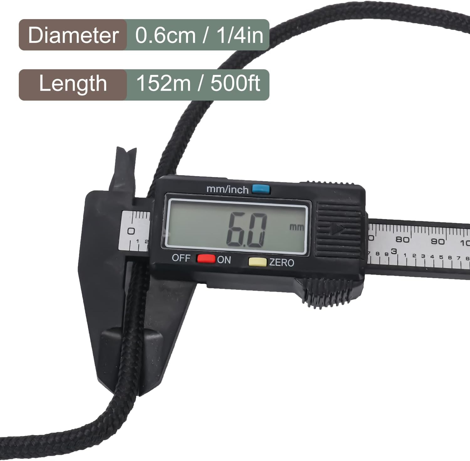 - 【Ideal Size and Length for Multiple Uses】 Measuring 1/4 inch in diameter and 500 feet in length, this black polyester rope offers the perfect balance of versatility and practicality. The 1/4 inch thickness is ideal for a wide range of applications, from securing heavy items to creating intricate designs. Whether you are working on a large-scale project or multiple smaller tasks, this rope will meet your needs.