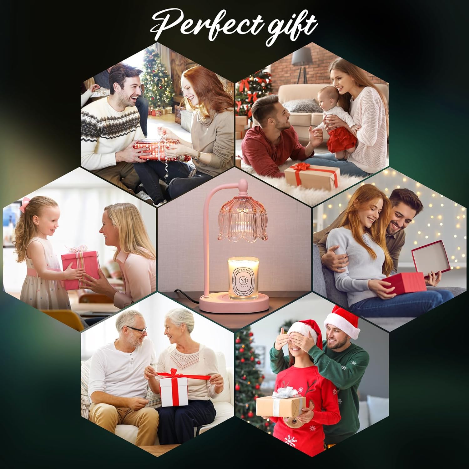 Pink Candle Warmer Lamp with Timer and Dimmer,Mother's Day Gifts for Mom/Wife, Melt Wax Warmer Lamp with 2 Bulbs for Candle Jars House Warming New Home Decor